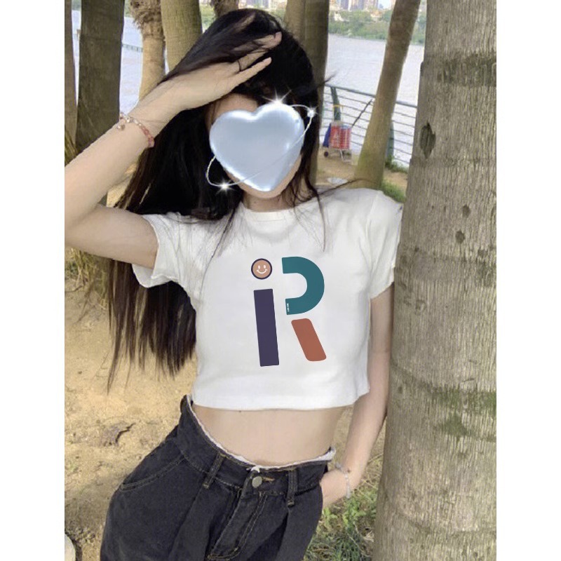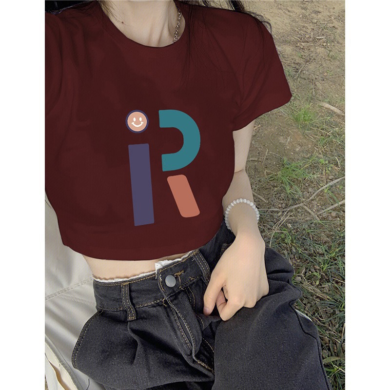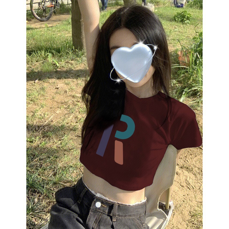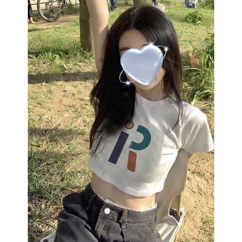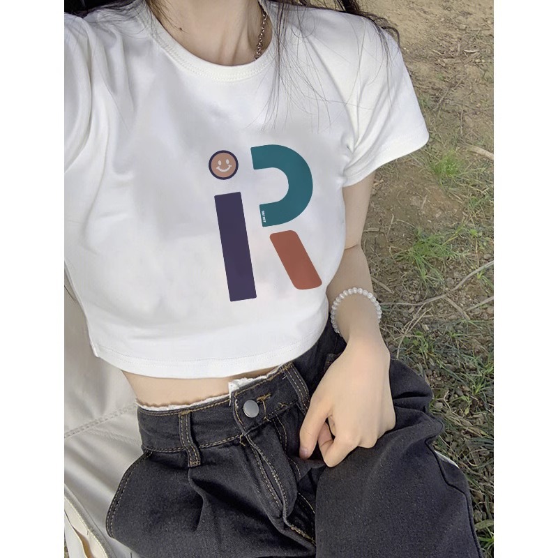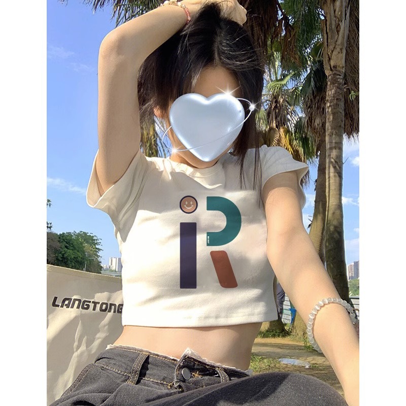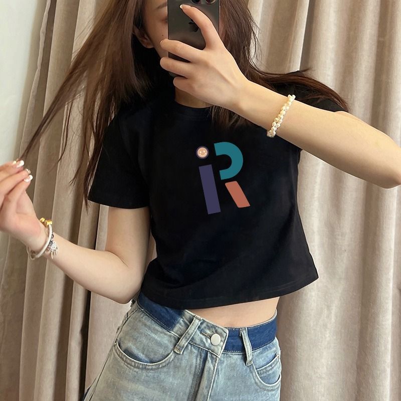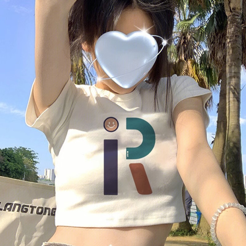 純綿の新型の甘いギャルのプリントの短いタイプの修身tシャツの女性の肩はやせている半袖の丸首を現して学生の上着に似合います。