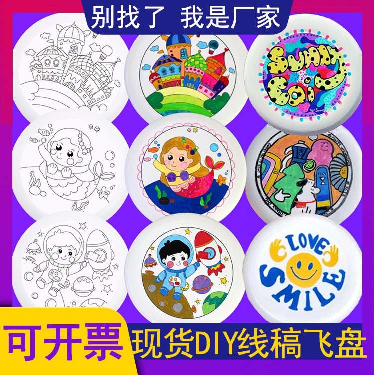 フリスビーDIYセット、落書き、絵画、ぬりえ、ティーンエイジャー、子供、白紙、手描き、線画入り、ソフトフリスビー、漫画