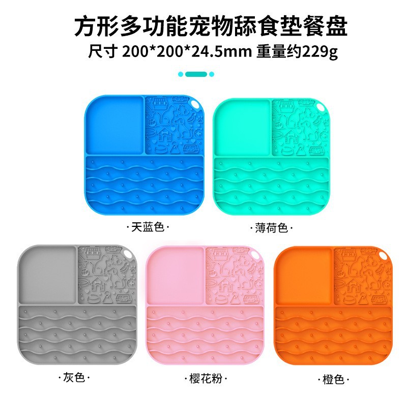 Amazonの新しい多機能ペットなめるマット、食品グレードのシリコンペットボウル、窒息防止、滑り止めシリコンコンパートメントプレート