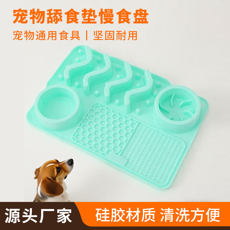 跨境硅胶宠物舔食垫吸盘防滑狗狗慢食垫舔食喝水盆多合一宠物食具