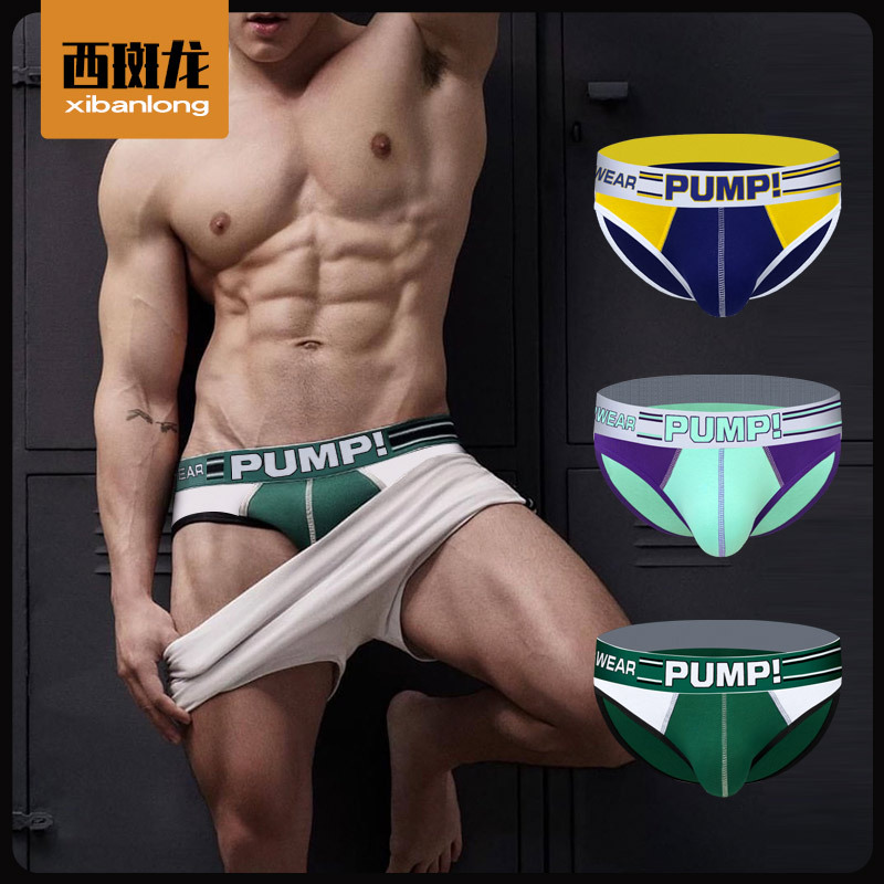 クロスボーダー新品ハイフォークメンズ三角パンツセクシーローウエストコットン通気性激凸バッグスポーツフィットネスBS813
