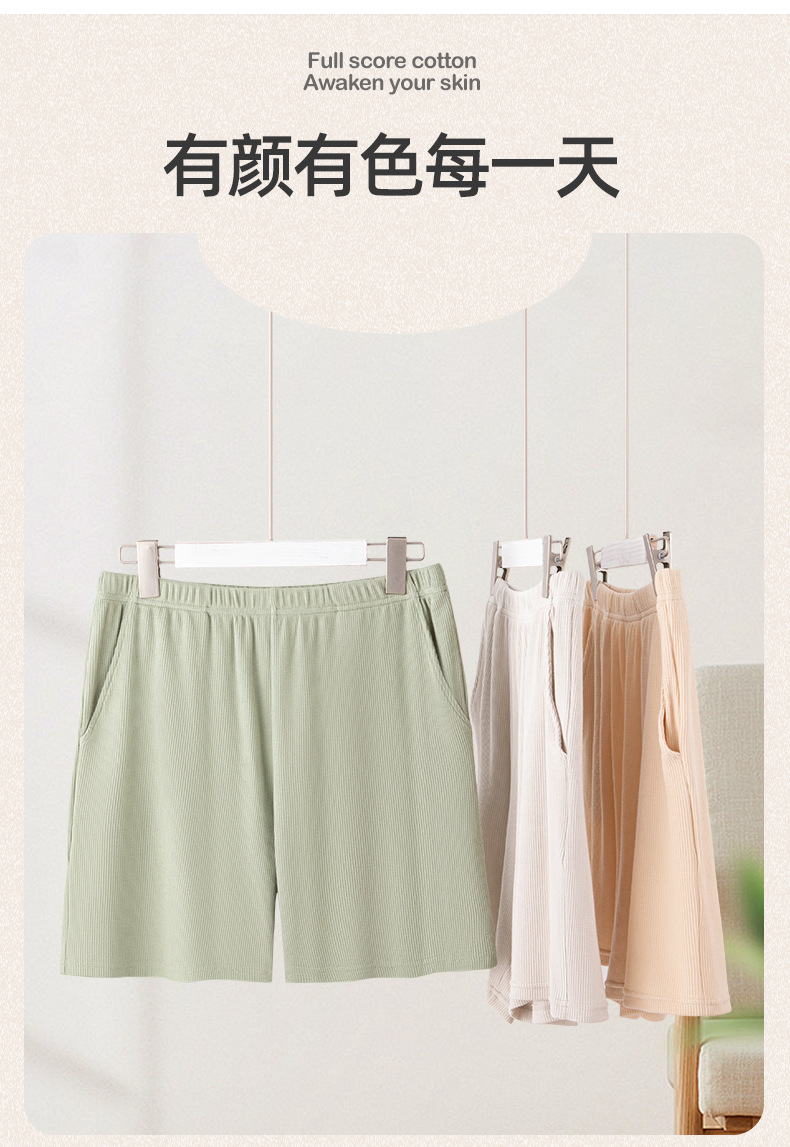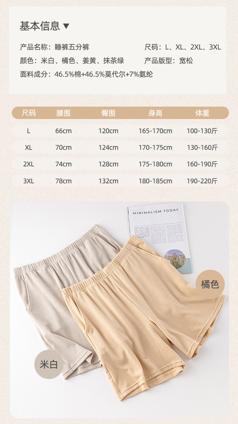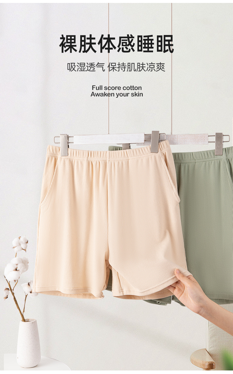 2025m Lanの新しいシルケットコットンワッフルアローパンツ、ゆったりとした肌に優しい通気性のあるパジャマパンツ、アウターウェア用の5分丈パンツ
