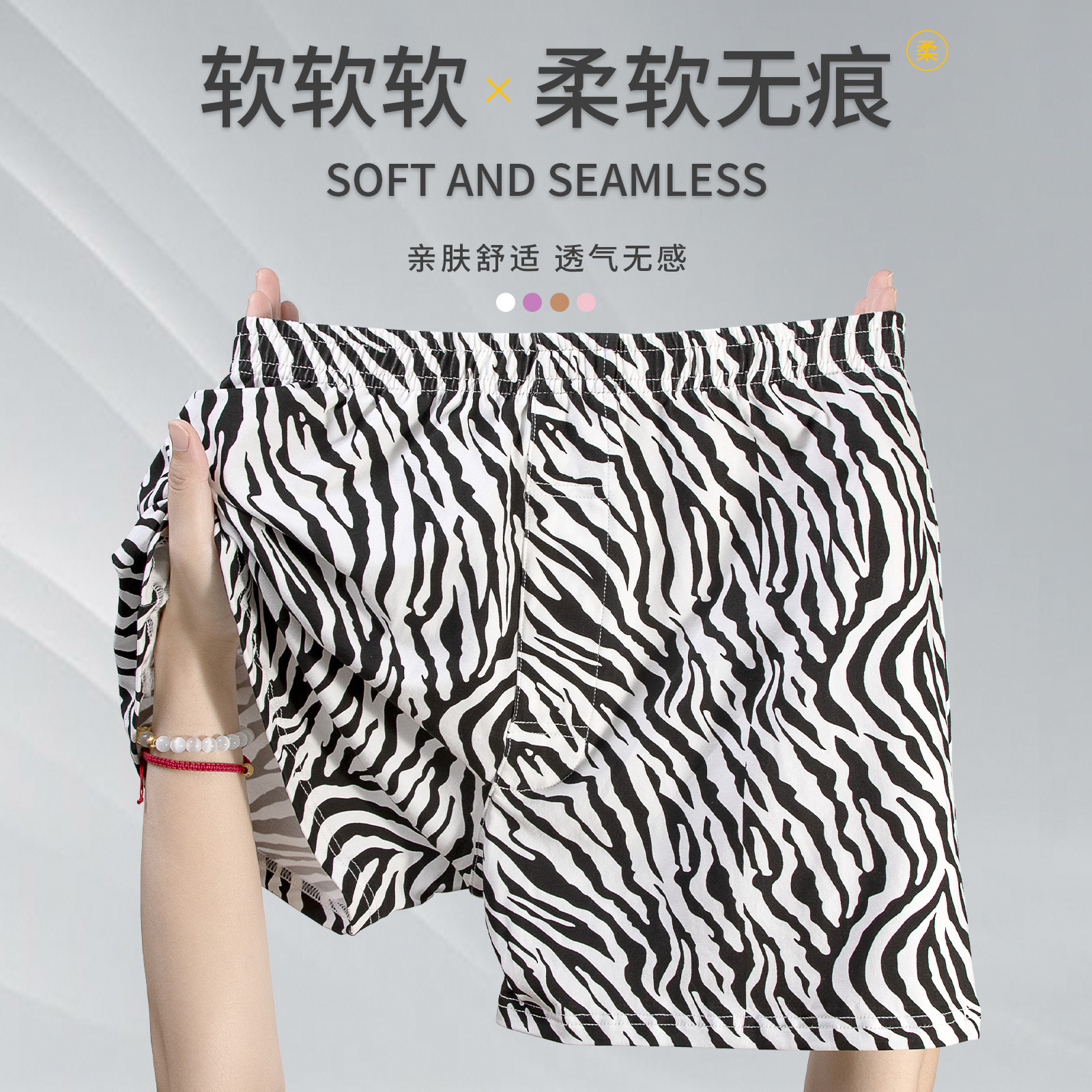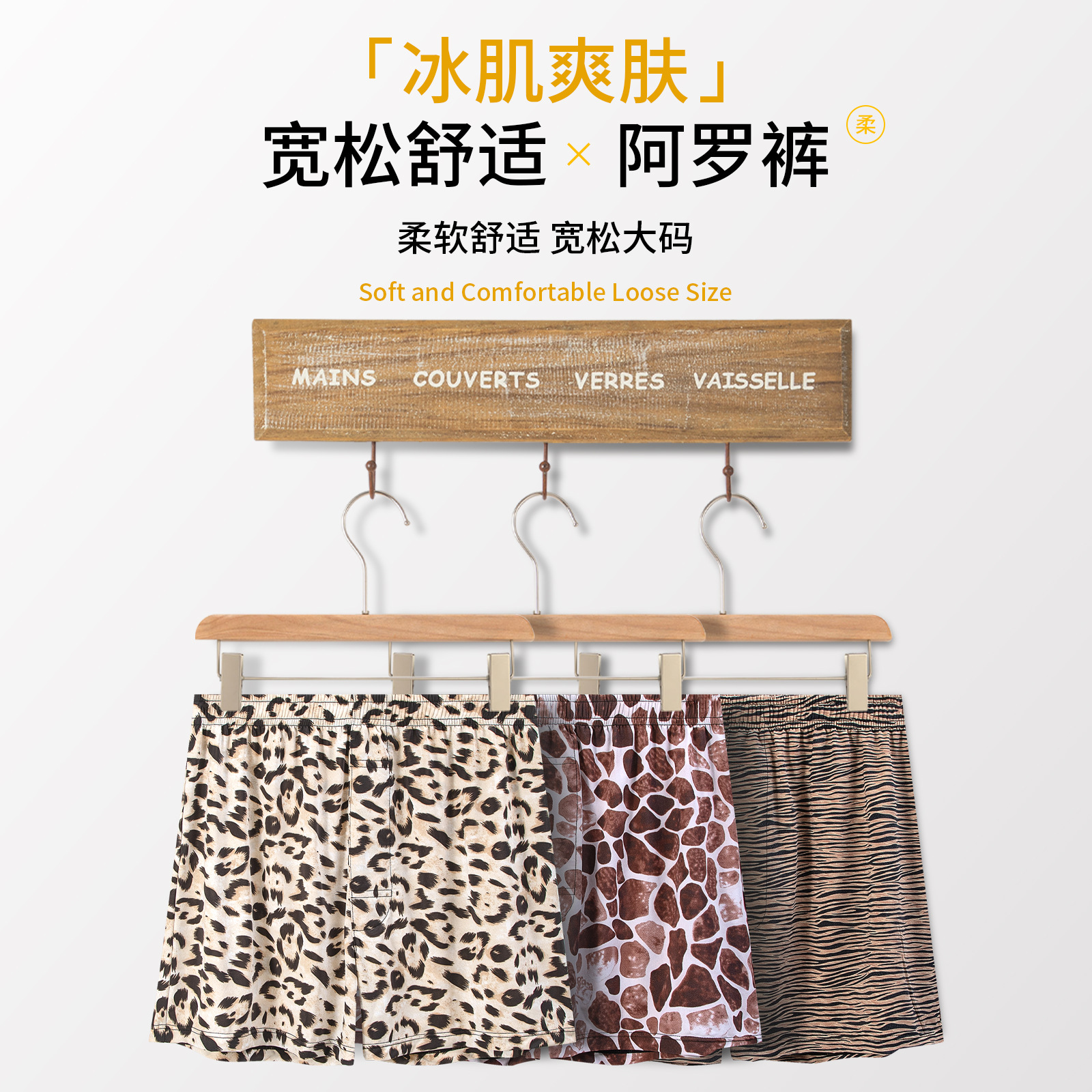 2025m Lan 新しいアイスシルクヒョウ柄アローパンツ、ルーズシームレスプリントメンズボクサーパンツ、大きいサイズの下着