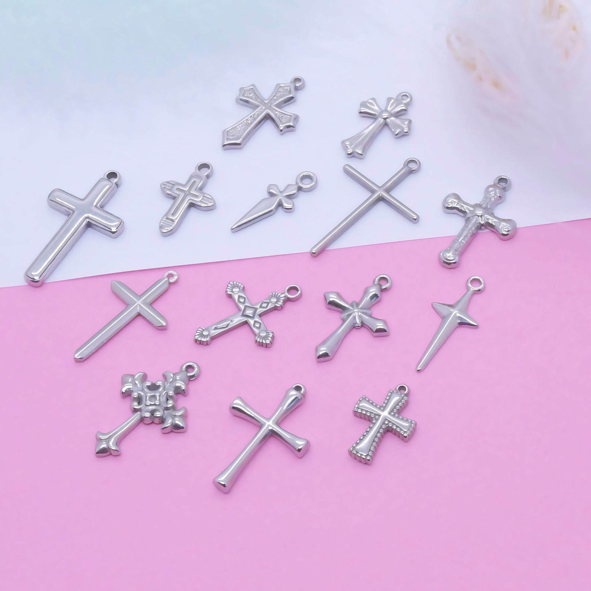 亚马逊热销 新款不锈钢油压十字架 吊坠挂件diy手链项链饰品配件
