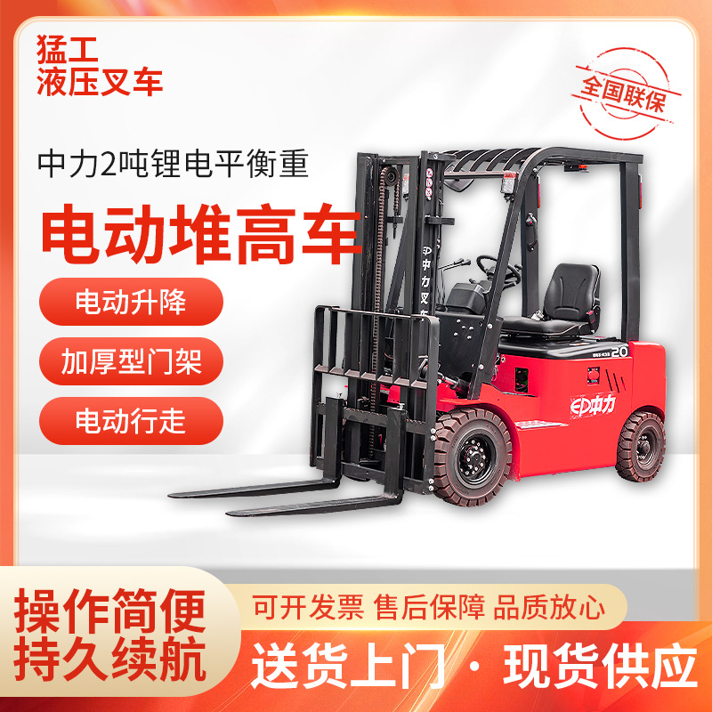 中力2トンリチウム電気バランス重電動スタッカ四輪昇降搬送車スタッカ全電動フォークリフト