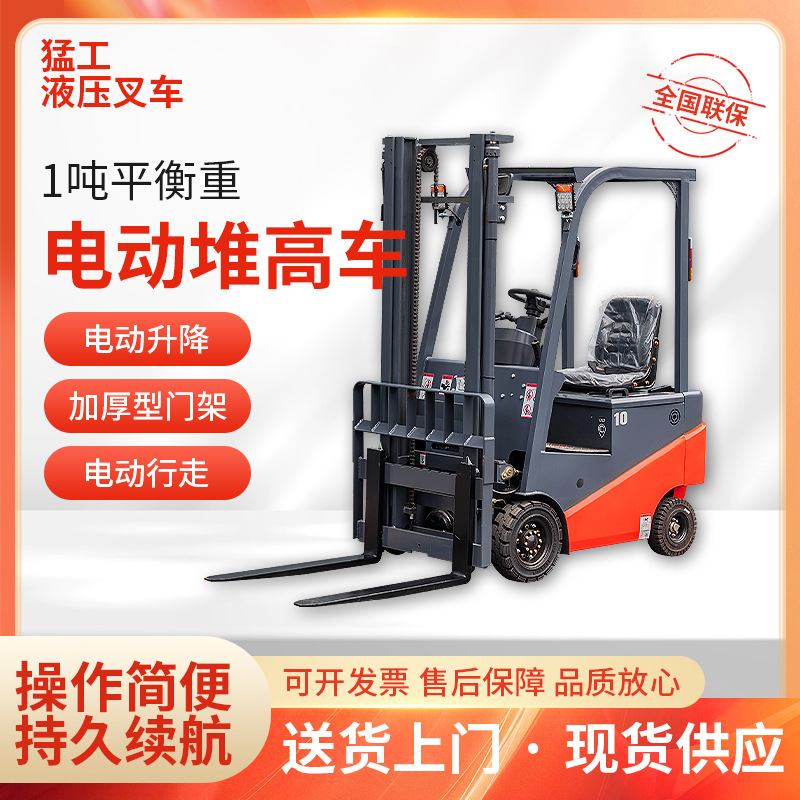 1トンバランス重量電動スタッカ四輪昇降搬送車スタッカ新エネルギー全電動フォークリフト