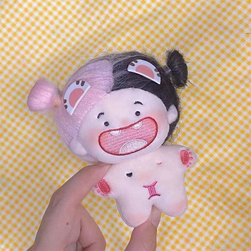 小红书缺牙棉花娃娃12星座毛绒钥匙扣女缺牙巴棉花裸娃娃包挂