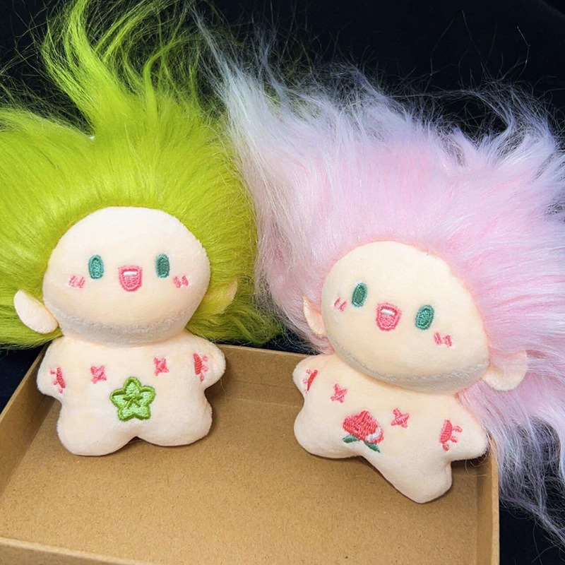 漫画の綿の人形のペンダントのぬいぐるみの揚げ毛の歯が欠けています。