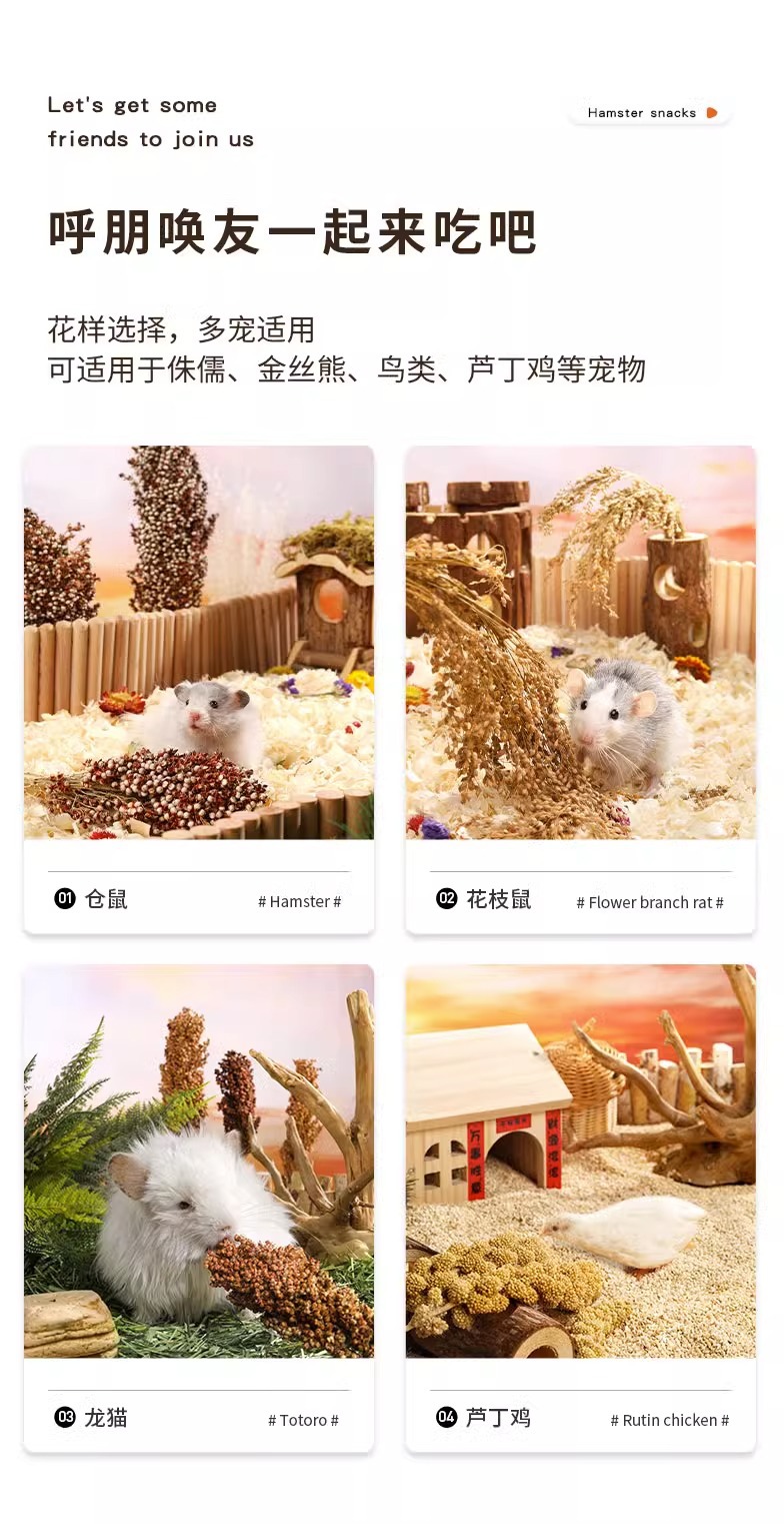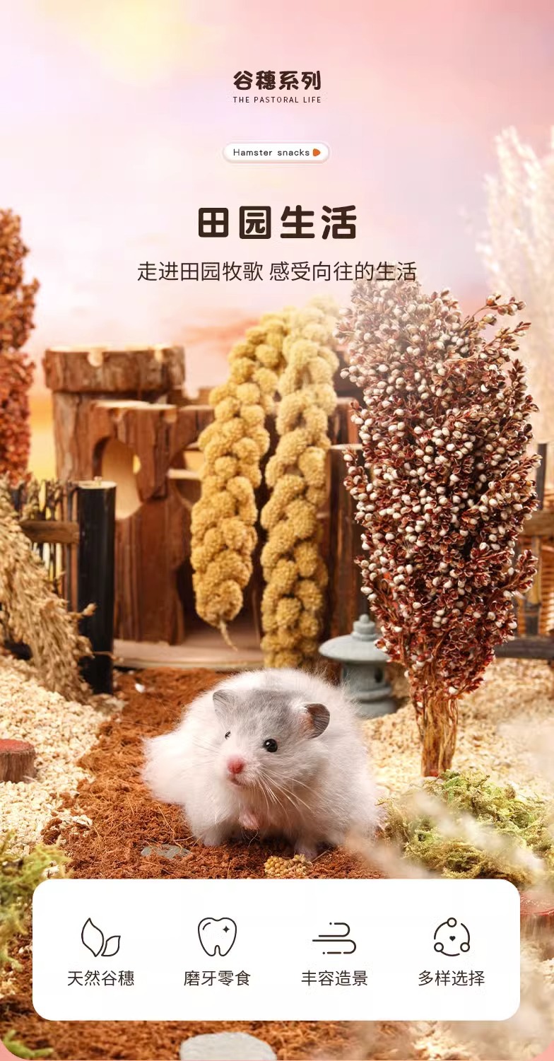 ハムスターの食糧の主な食糧は歯磨き棒の田園生活の谷穂の敷物の造景用品の金糸熊の間食の飼料を磨きます。