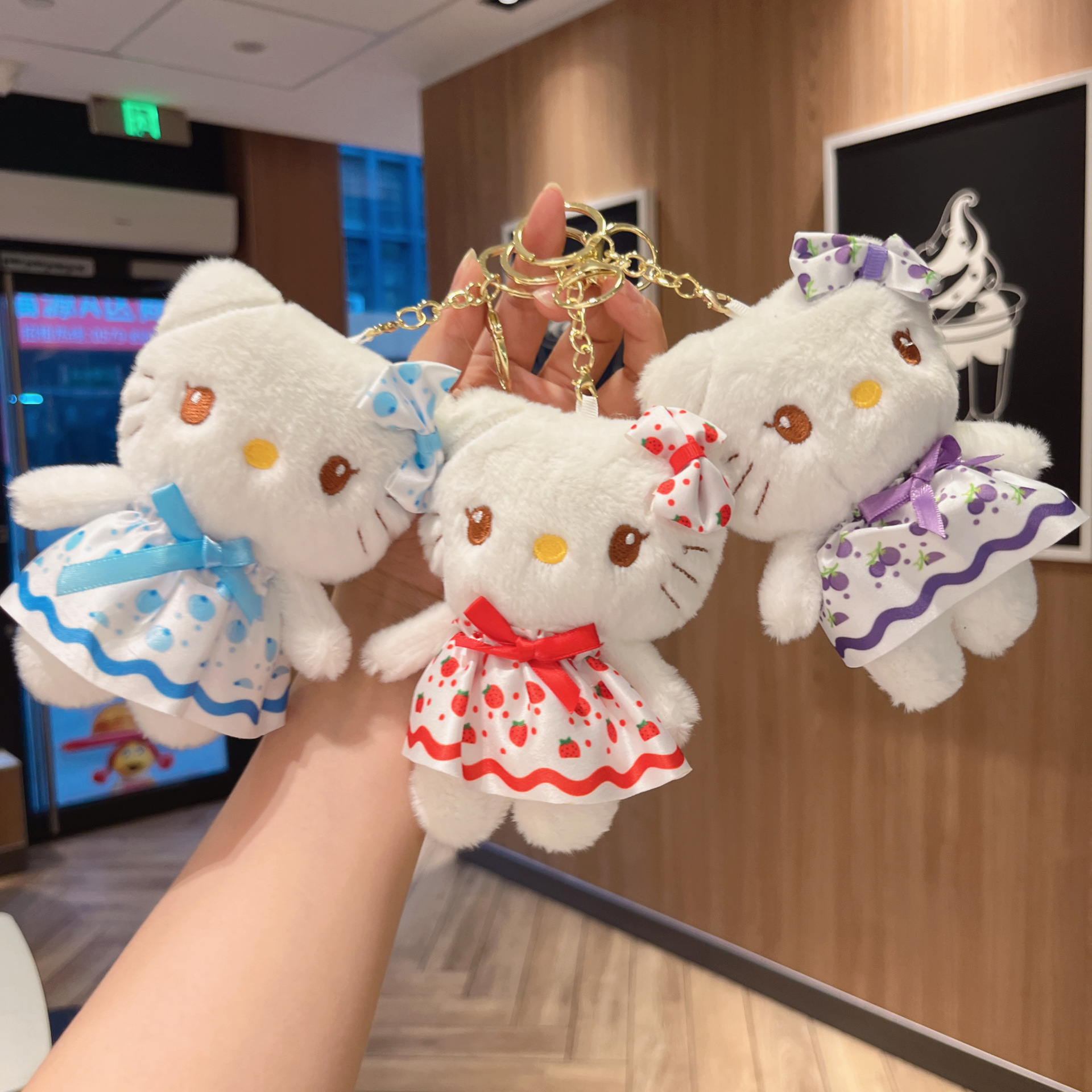 裙子小猫咪公仔挂件钥匙扣可爱草莓娃娃批发卡通玩偶挂饰毛绒玩具
