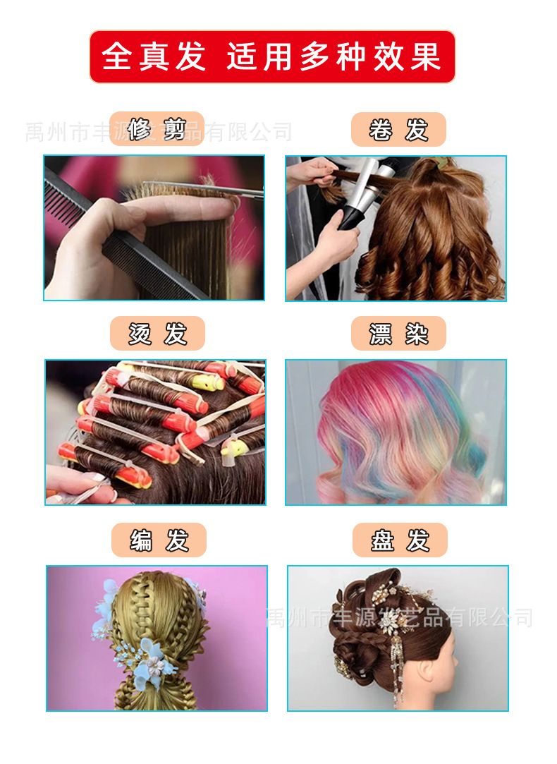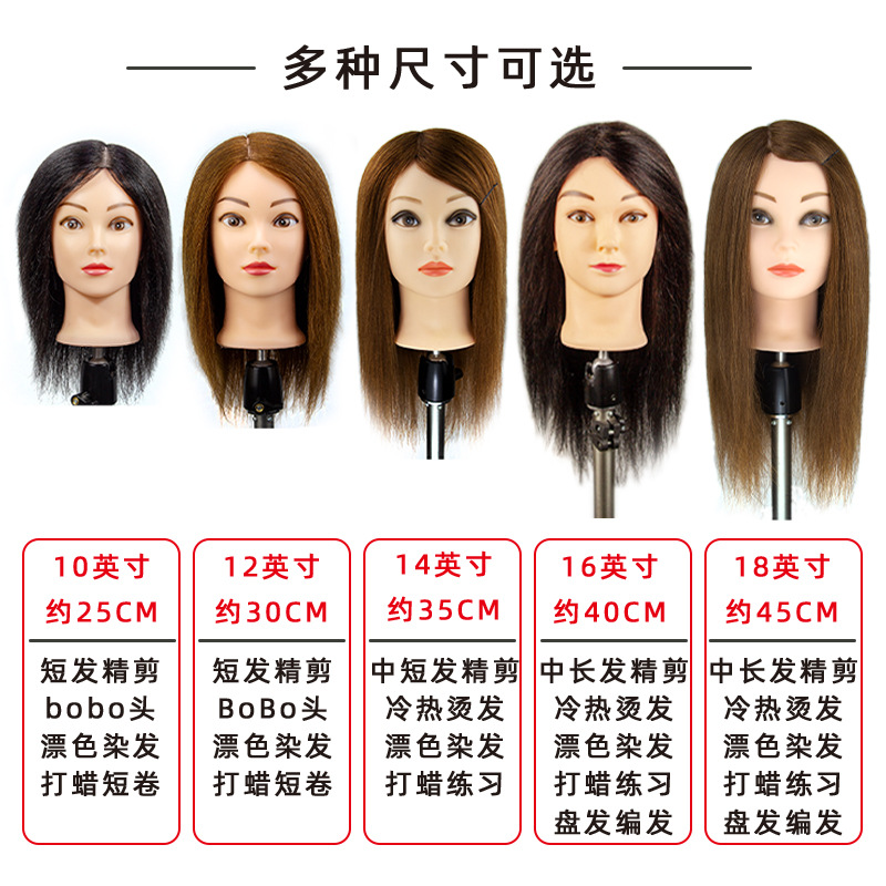 本物の髪の頭のモデルは、カールを染めて練習することができます。