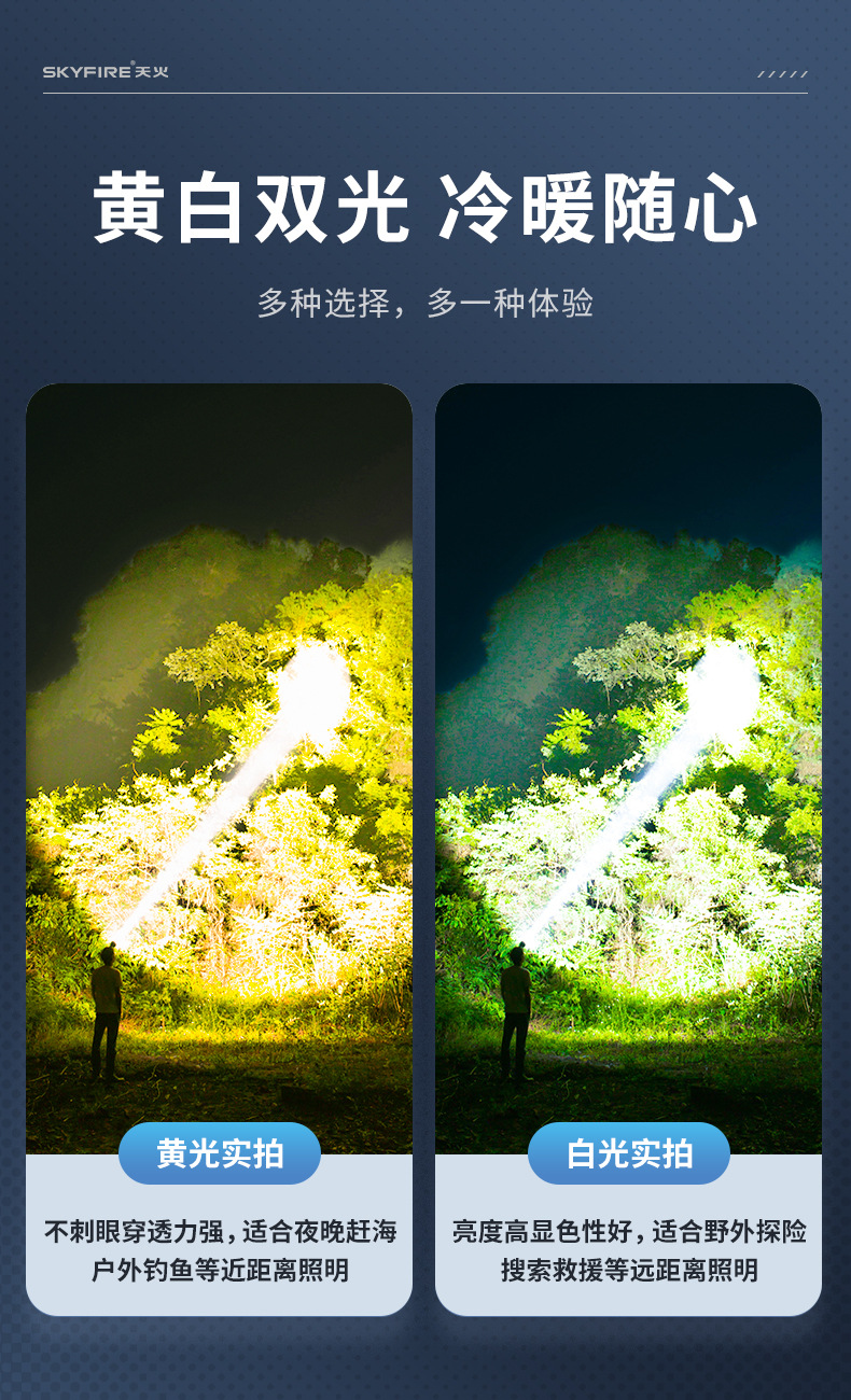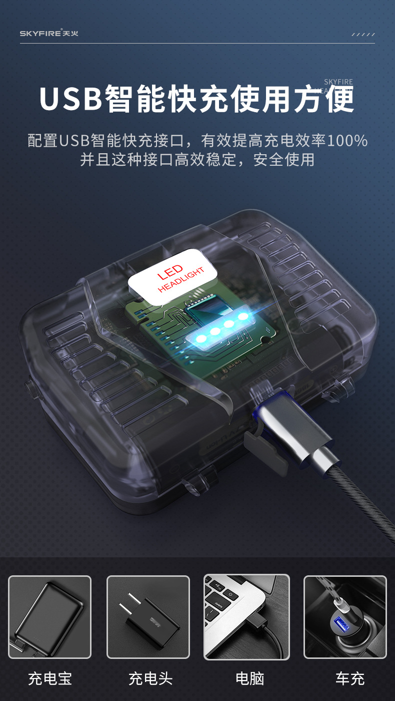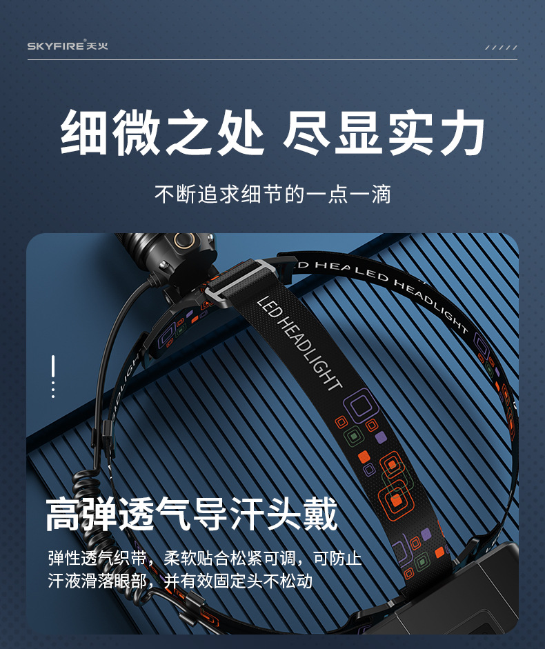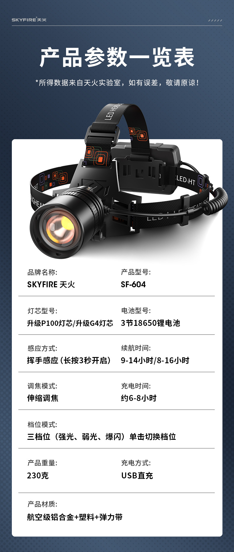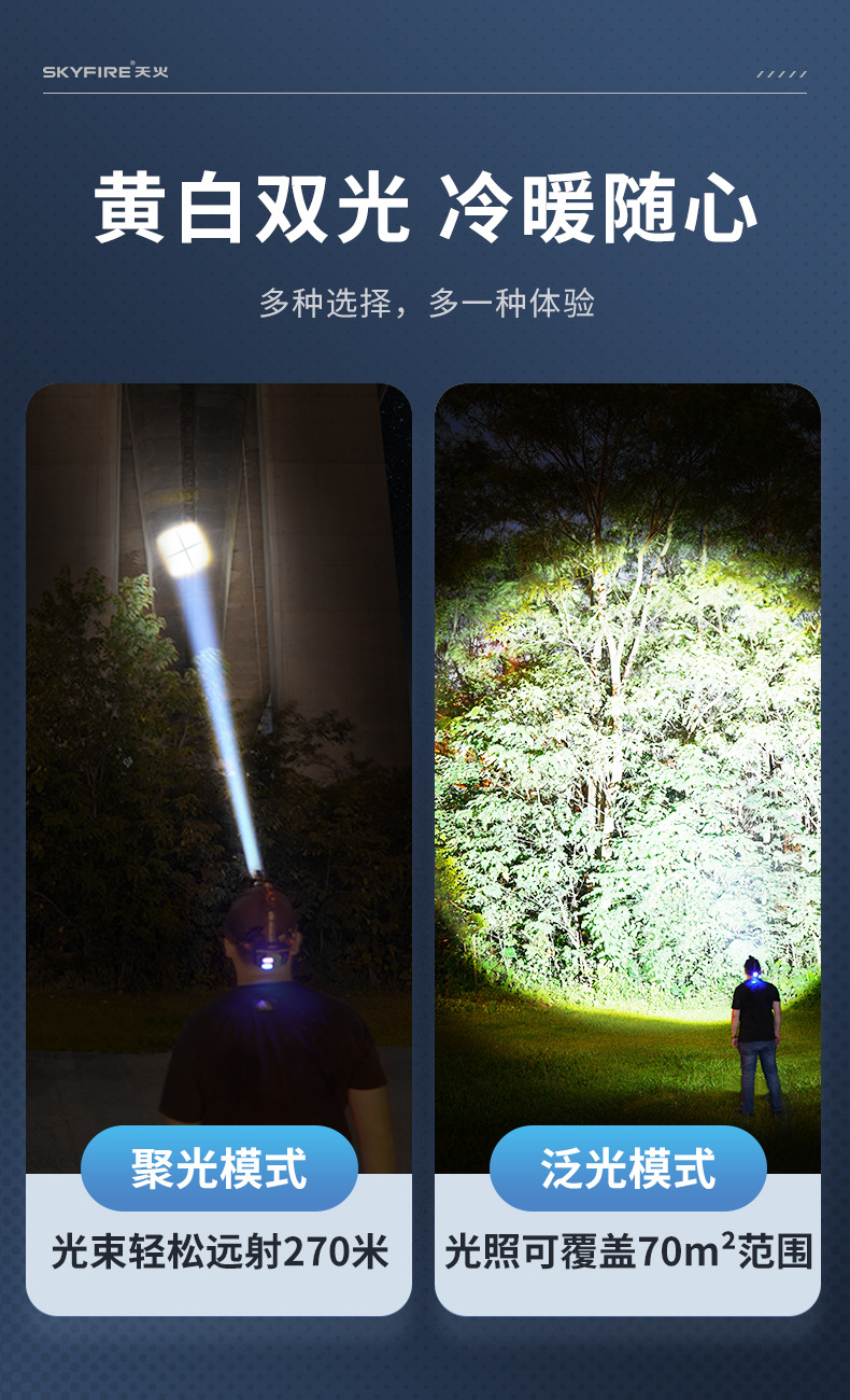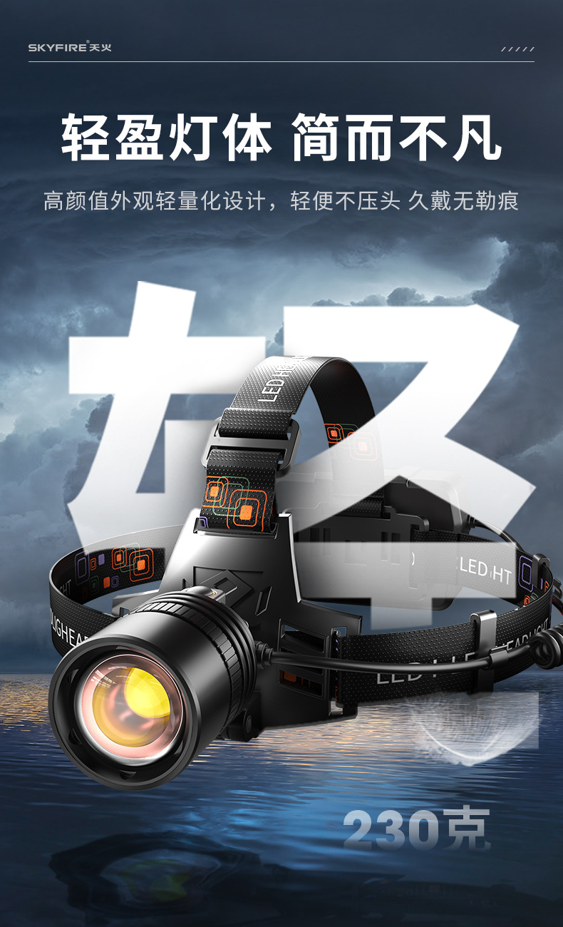 天火SF-604P100灯芯白色光黄光強光ヘッドライト充電超亮頭戴式超長航続屋外