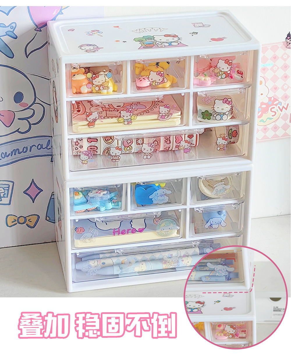 サンリオ多机能収纳ケースキティキャット収纳グーグルビーズチェーンアクセサリー文房具引き出し式収纳ケース