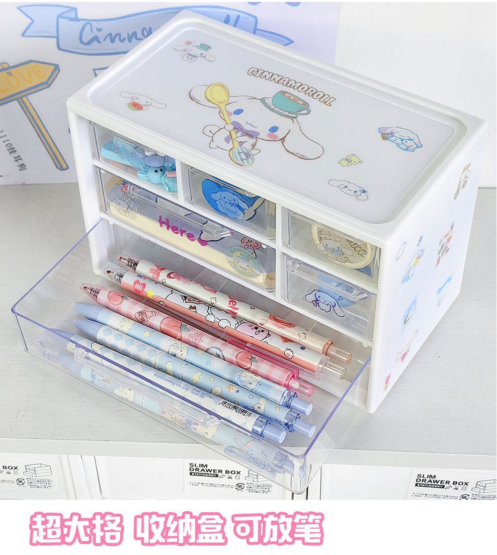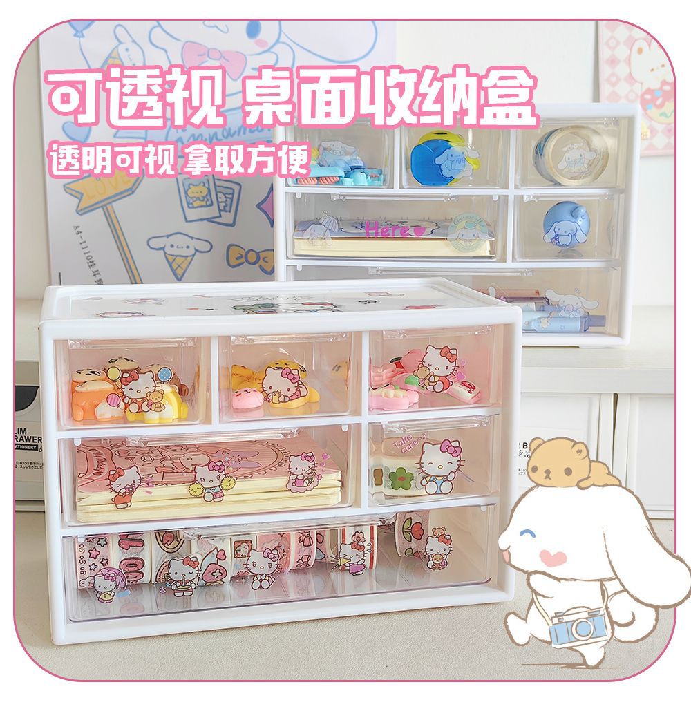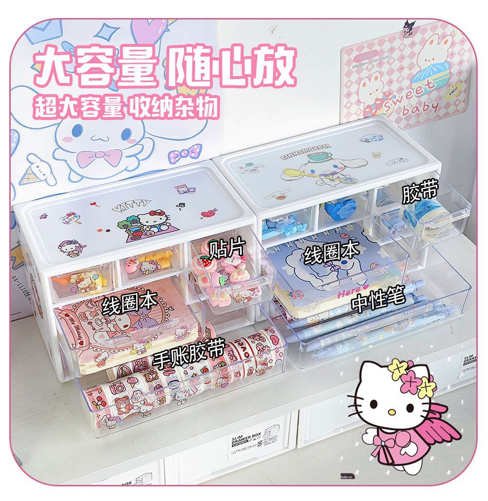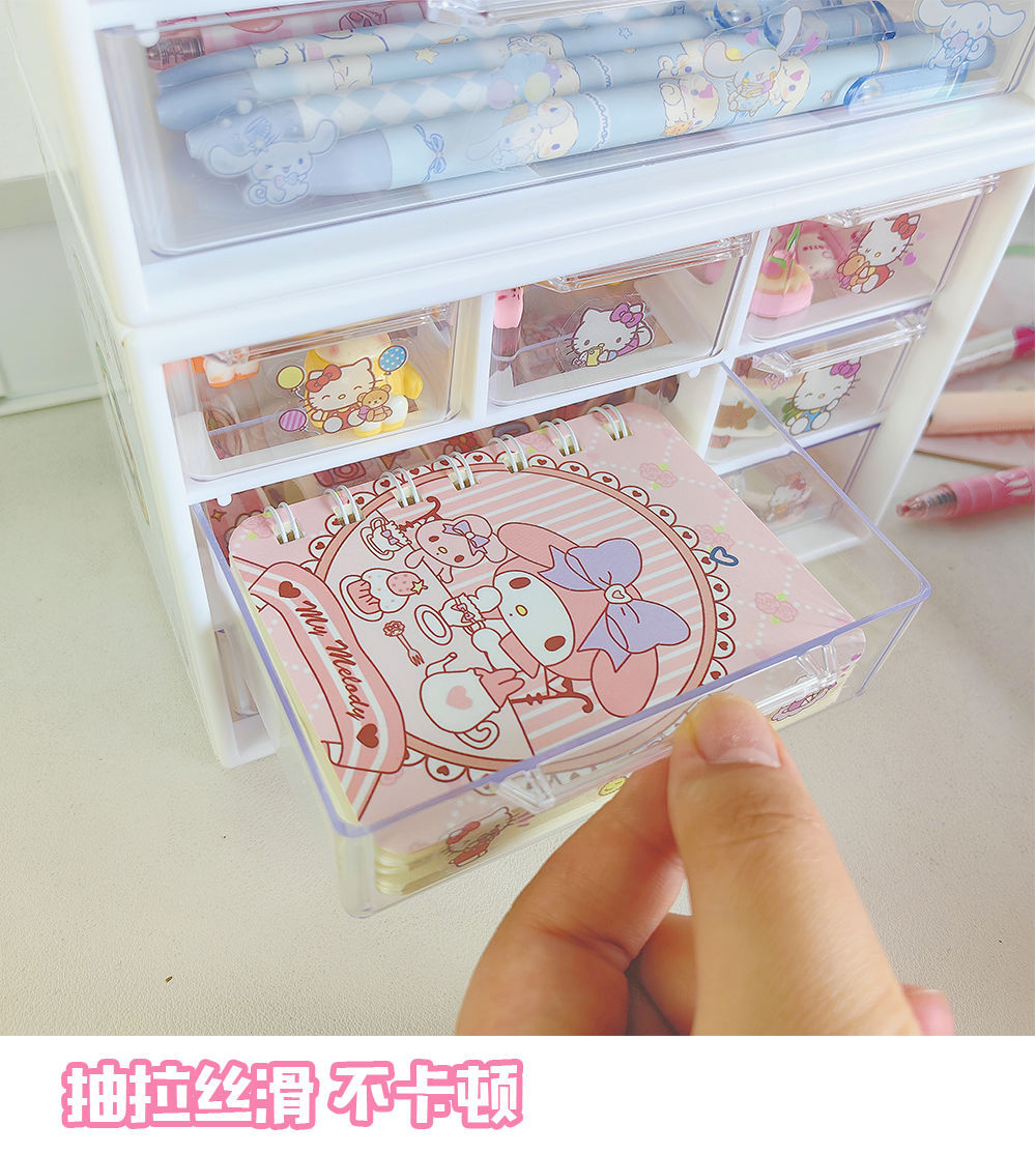可爱三丽鸥卡通桌面抽屉美乐蒂收纳盒抽屉式迷你文具透明整理盒