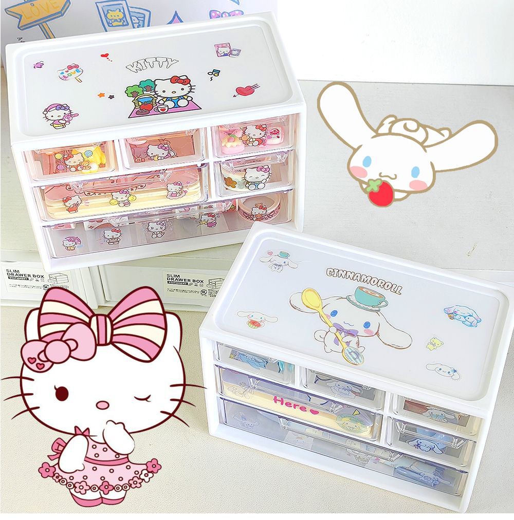 サンリオ 多機能収納ボックス キティ猫収納 グループビーズチェーン ジュエリー文具 引き出し型収納ボックス