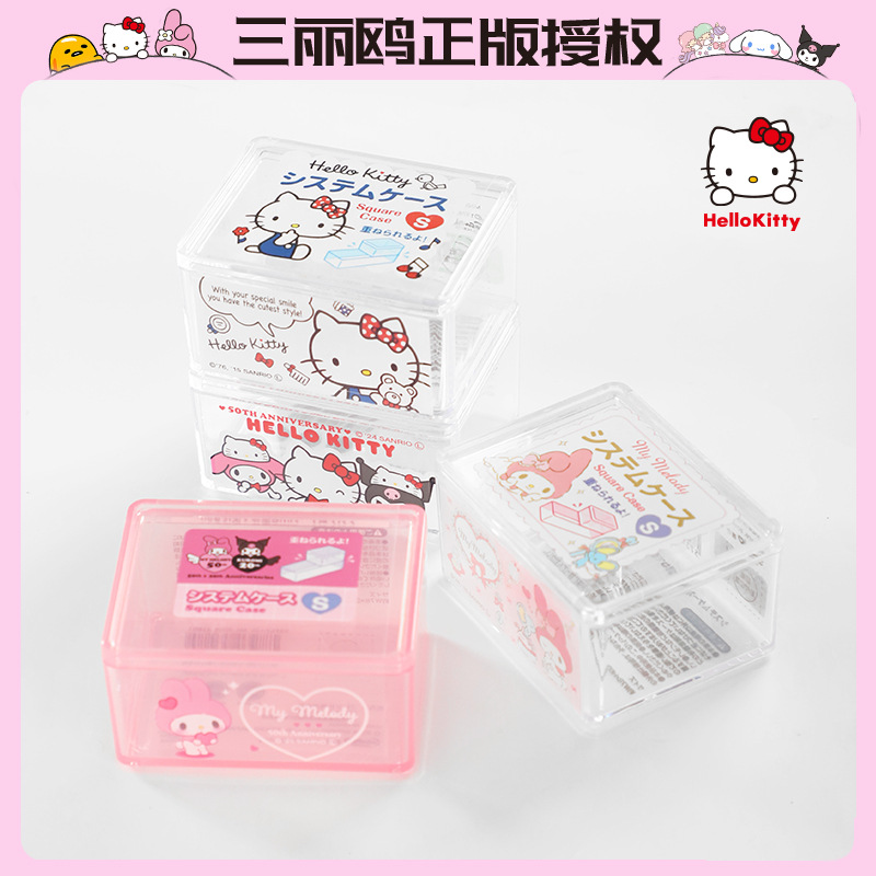 サンリオハローキティ収納ケース蓋付き重ね収納可能防塵アクセサリーケース家庭用ミニケース透明