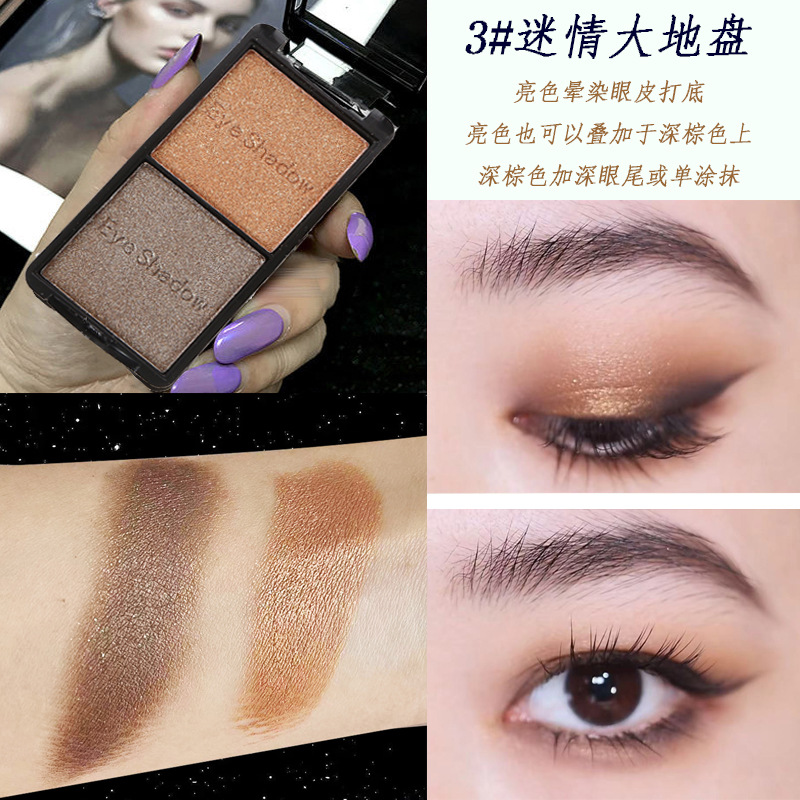 Novo5834微夢二色アイシャドウ盤艶珠光水灰泥灰粉顕色持続日常淡化粧アイシャドウ