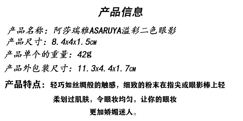 製品名 アサ瑞雅溢彩二色アイシャドー
