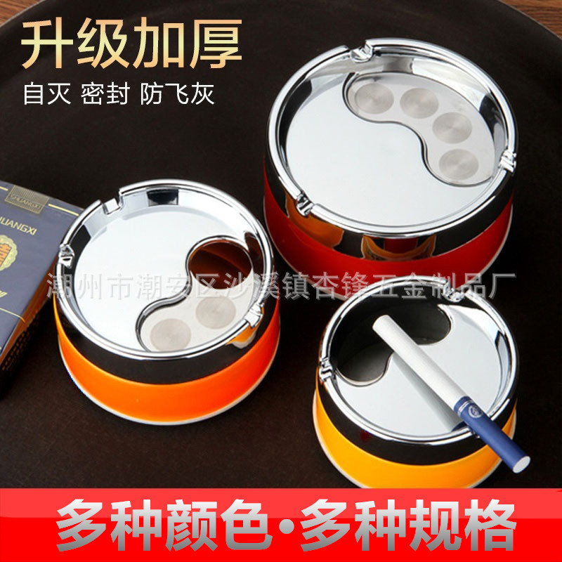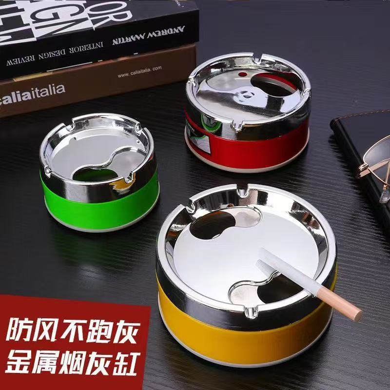 ステンレス灰皿カラー回転個性潮流家庭用リビングオフィスカバー付き防風防飛灰皿
