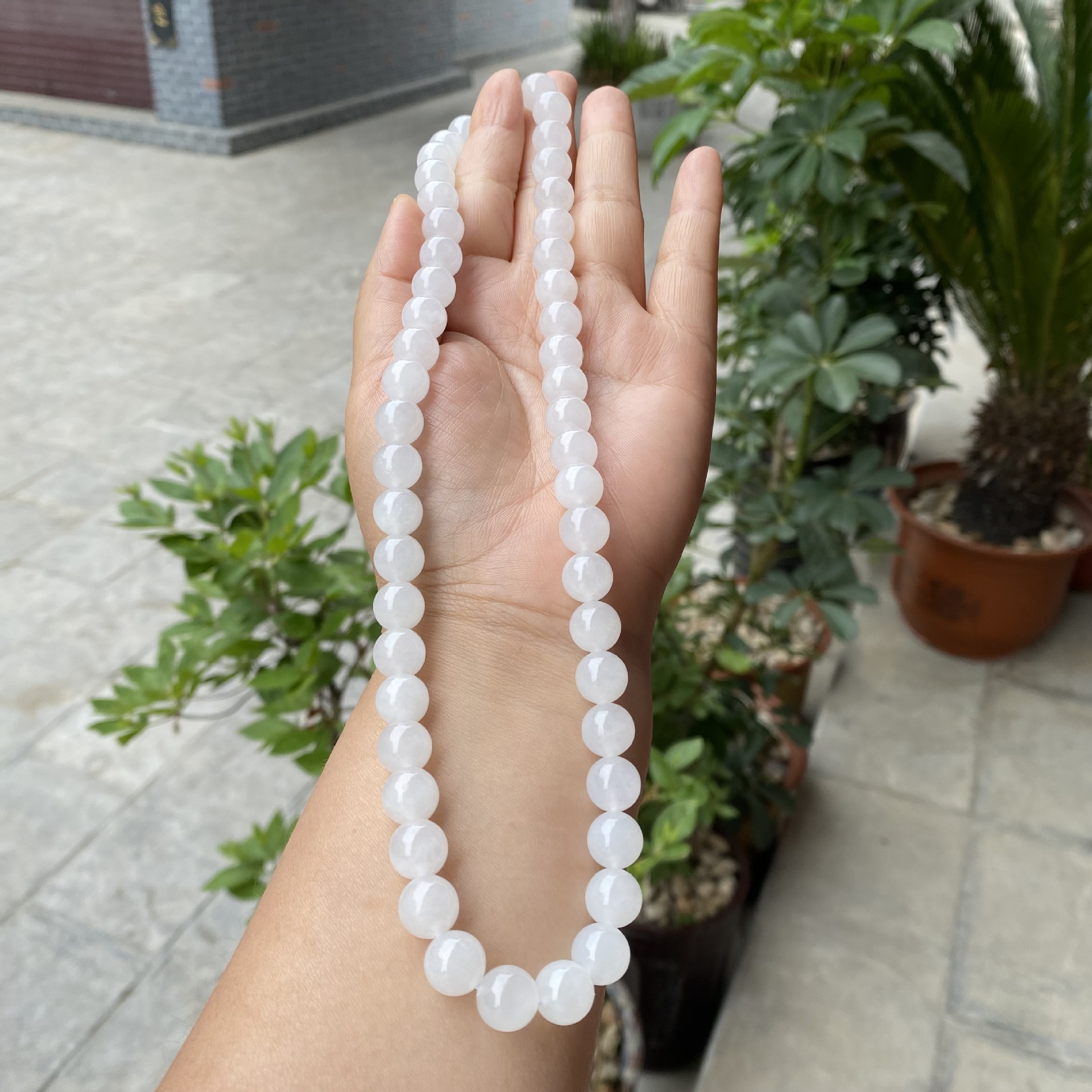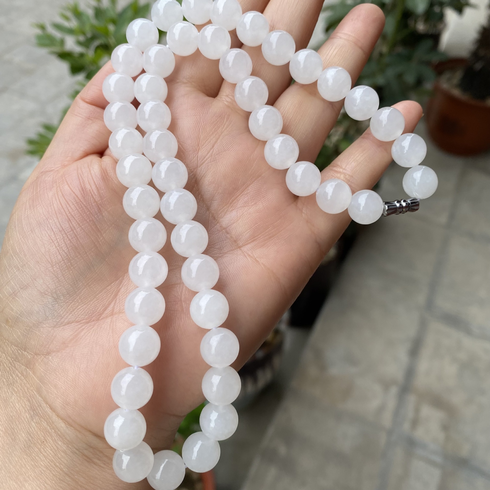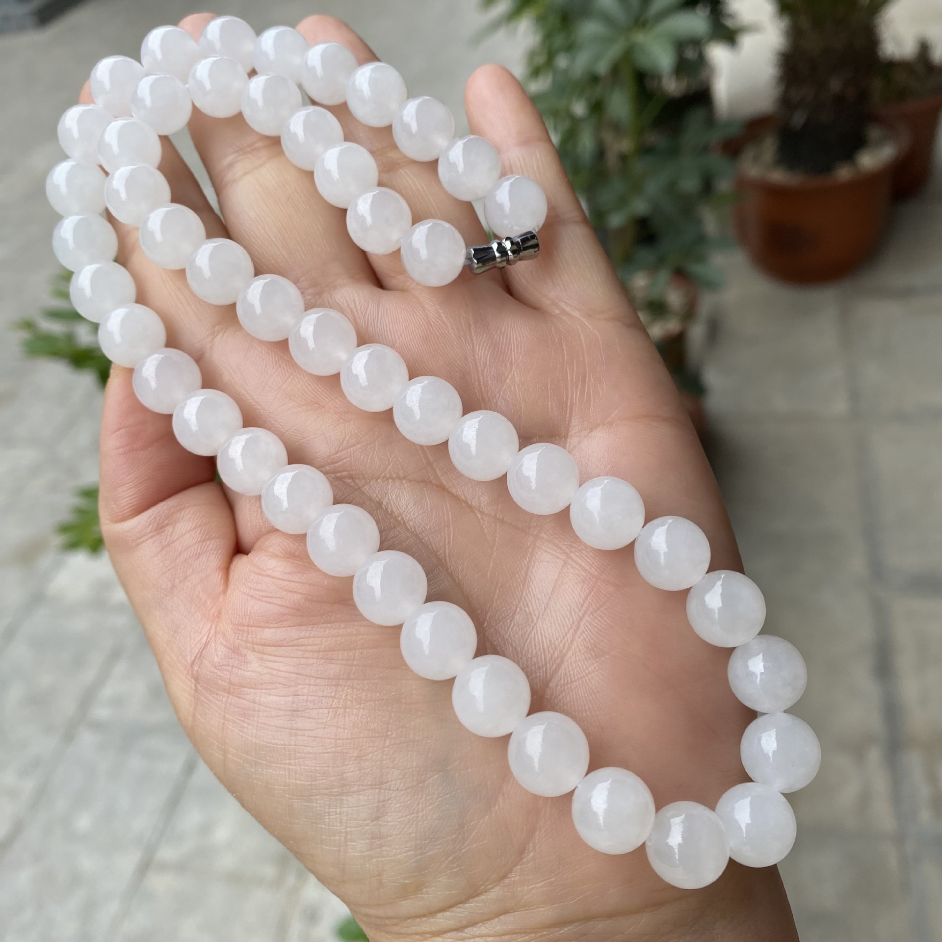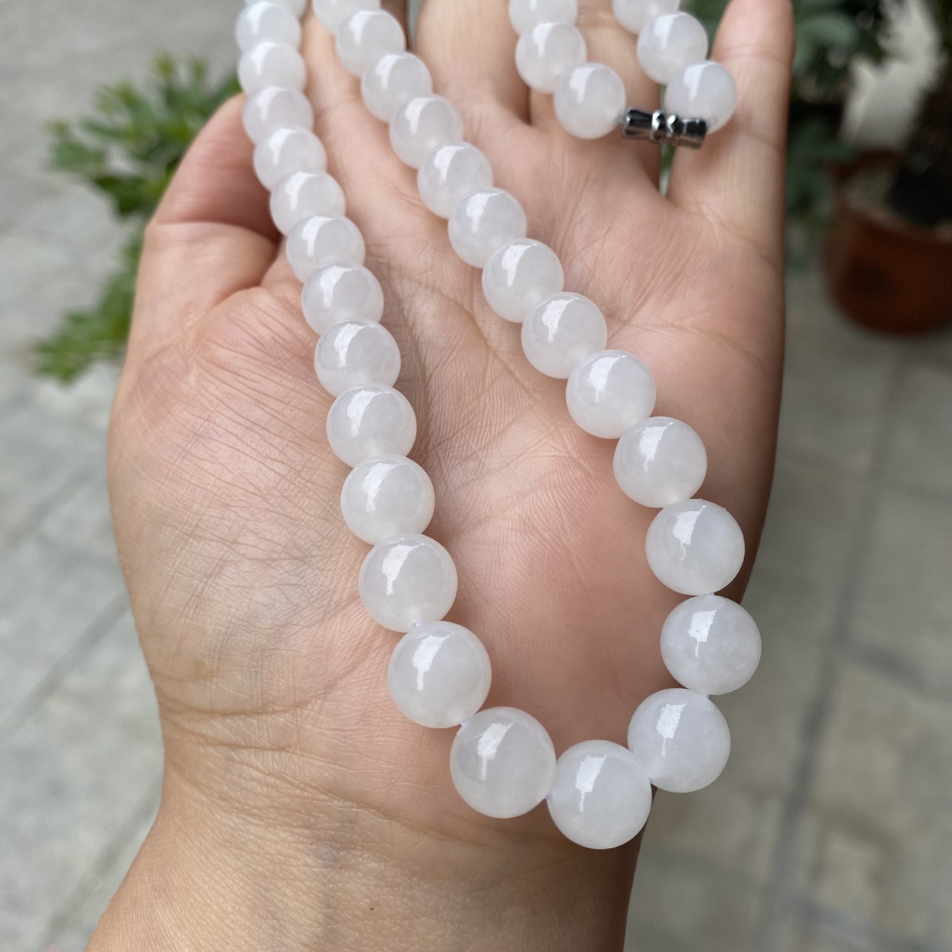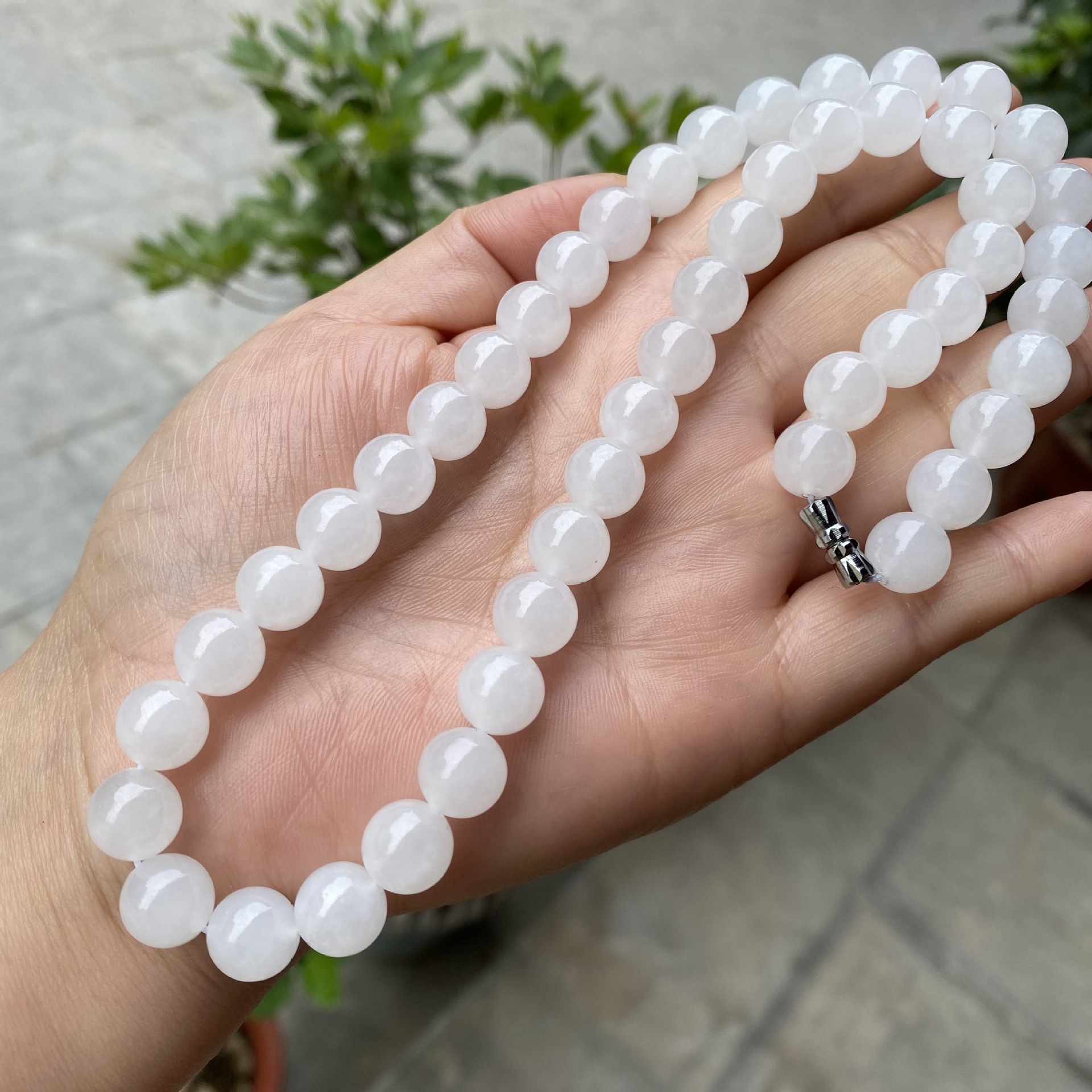 和田玉ネックレス天然白玉10mmボールママズチェーン大白料ボールチェーンチェーン玉玉アクセサリー