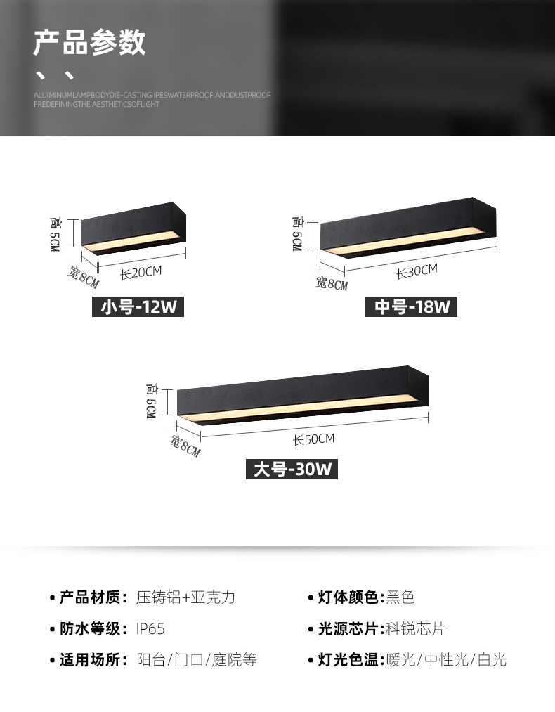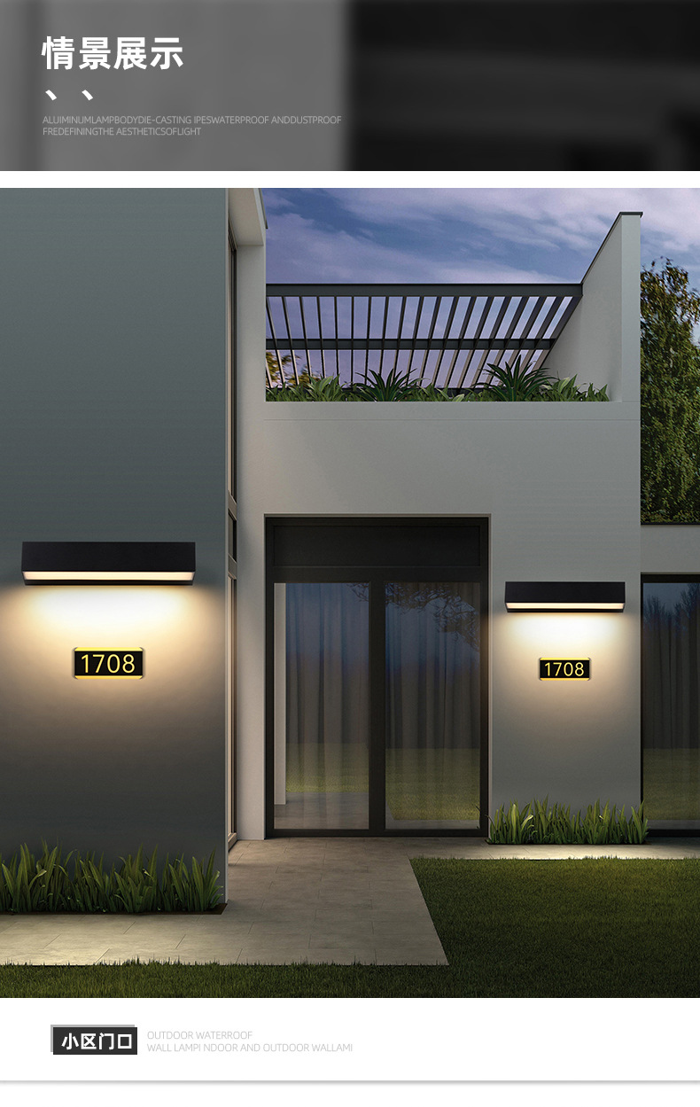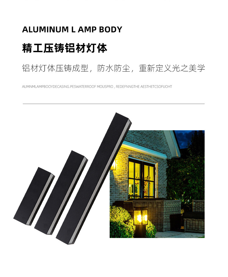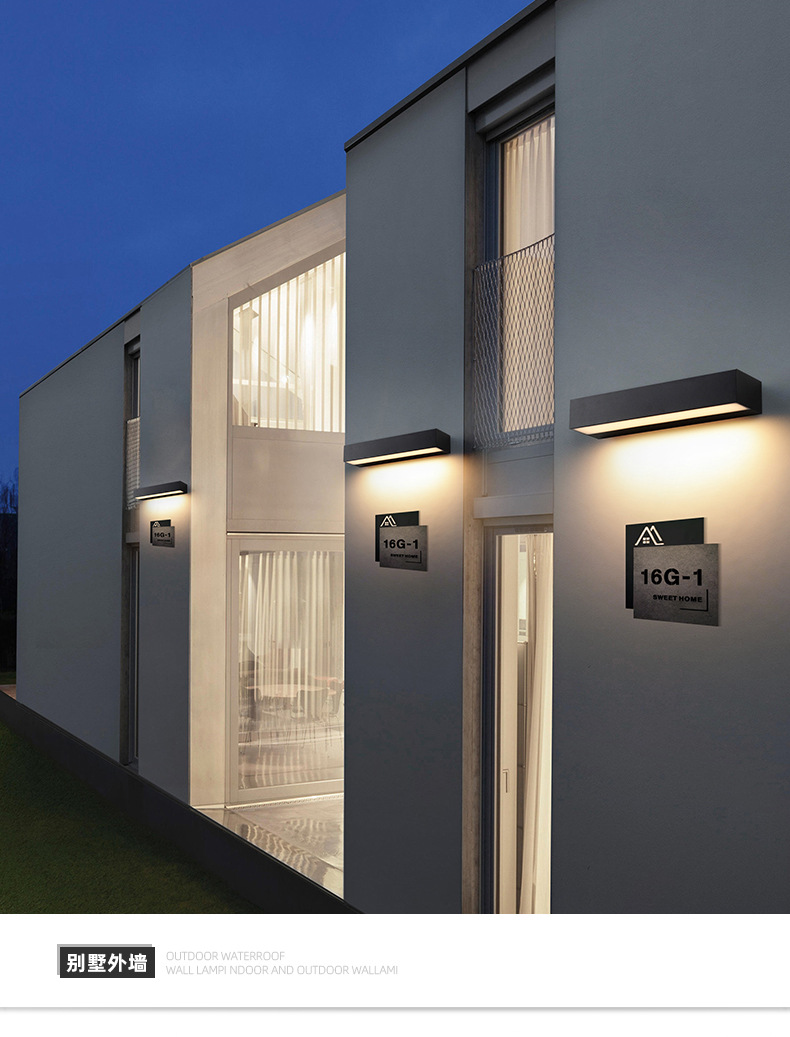 屋外防水led一字型壁灯創意長条形洗壁灯玄関別荘照壁灯