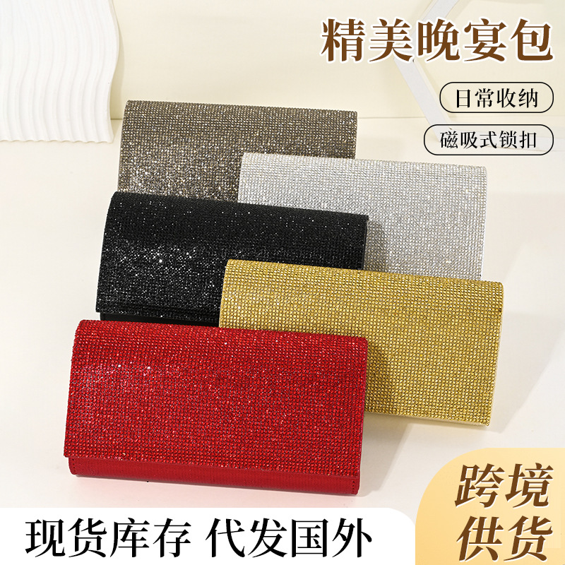 2025跨境新款晚宴包时尚优雅百搭镶钻斜跨单肩晚装包链条式手拿包