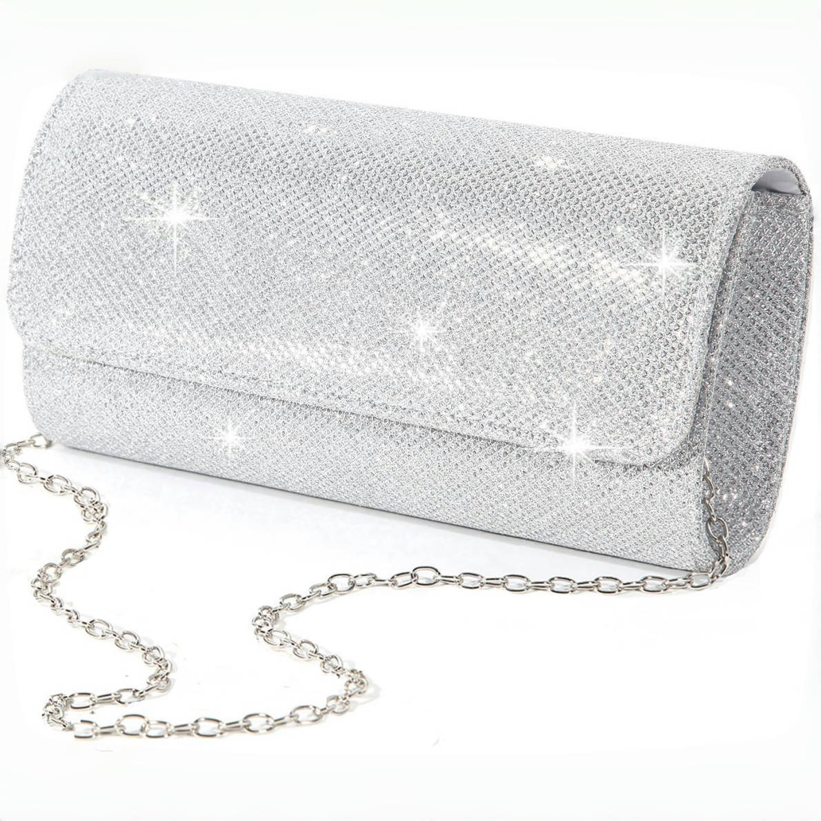 女士银色晚宴褶皱闪亮高级感手拿包晚装包礼服手包女士婚礼女包