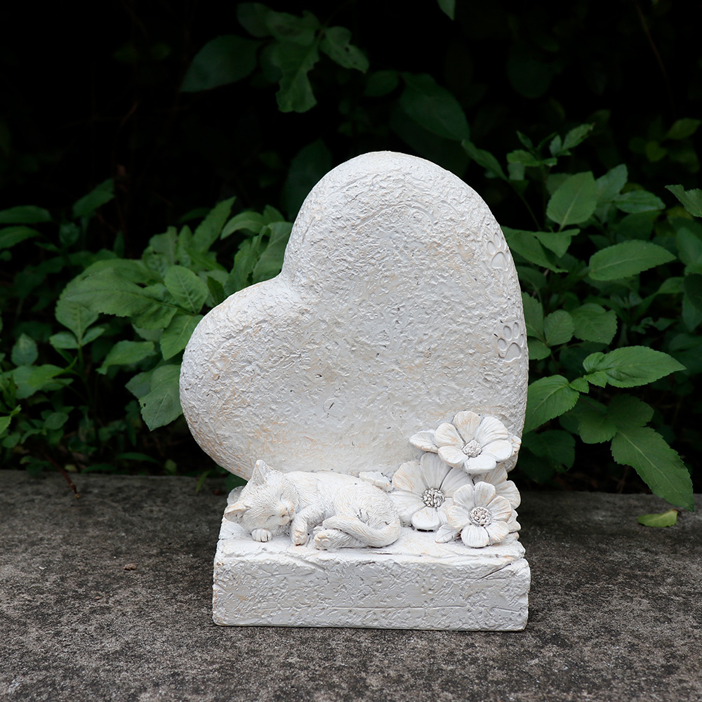 アマゾン越境双ハート型墓石創意樹脂シミュレーション猫犬ペット記念石碑工芸品置物