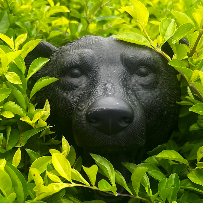 国境を越えた熊の頭の木の上に屋外の動物の庭の庭の吊り下げの配置の樹脂の工芸品を掛けます。