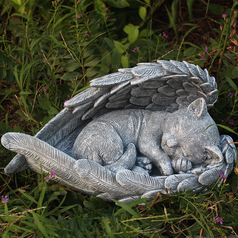 モダンなミニマリストスタイルの天使の羽猫と犬の樹脂工芸品装飾装飾品屋外中庭装飾のための国境を越えた特別な供給