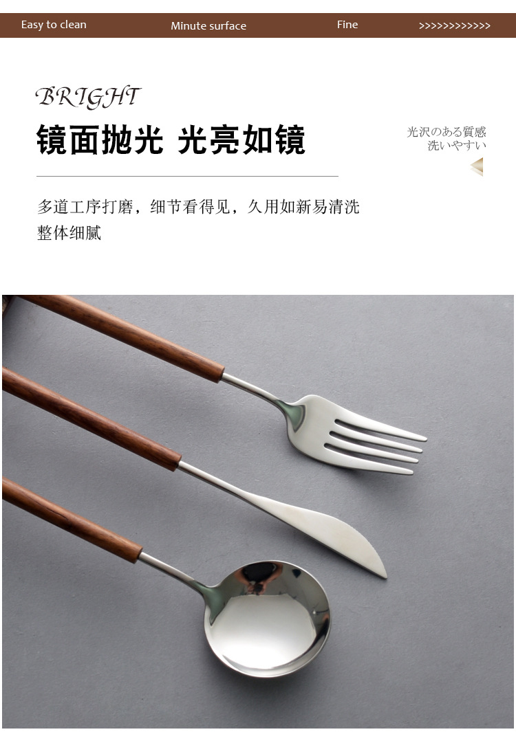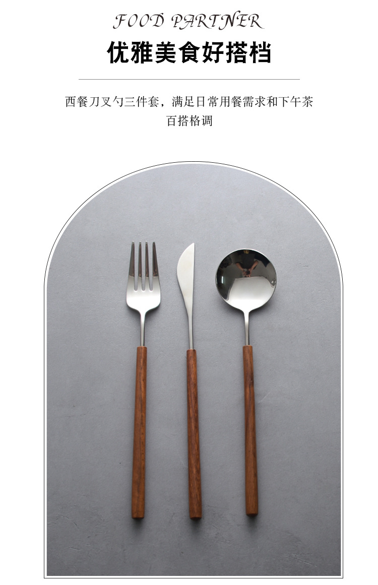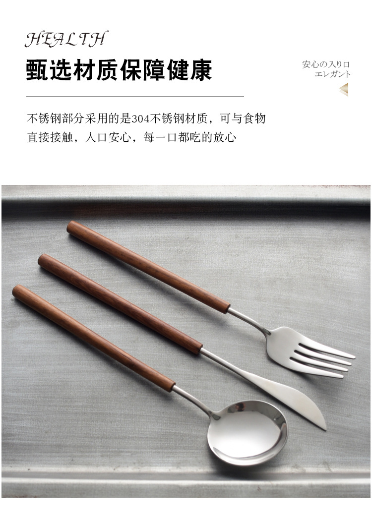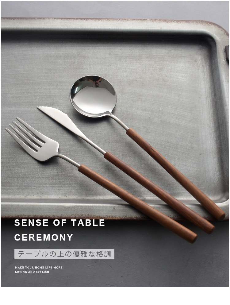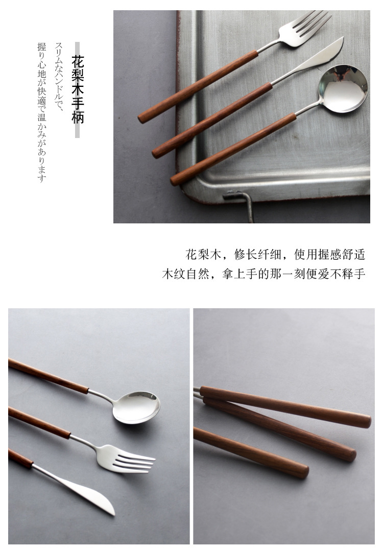 日本式花梨木柄西食器ナイフフォークスプーン三点セット304ステンレス家庭用スプーンフォーク