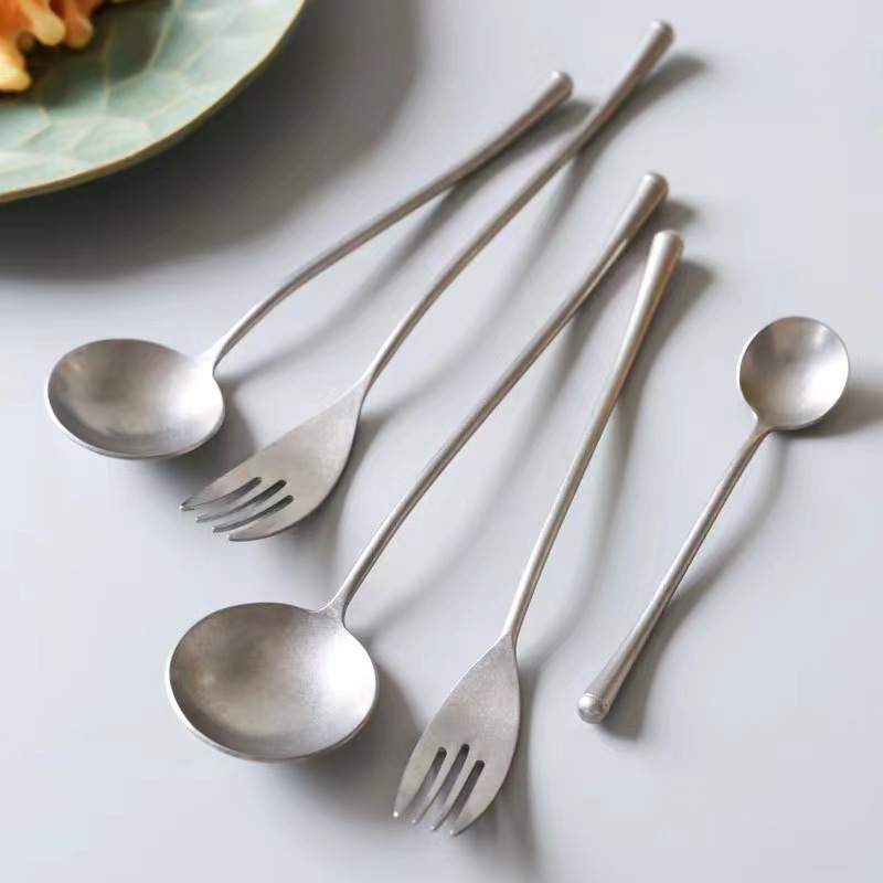 日本風は古い復古灰西食器304ステンレスナイフフォークスプーン攪拌スプーン果物フォーク家庭用レストランを作る