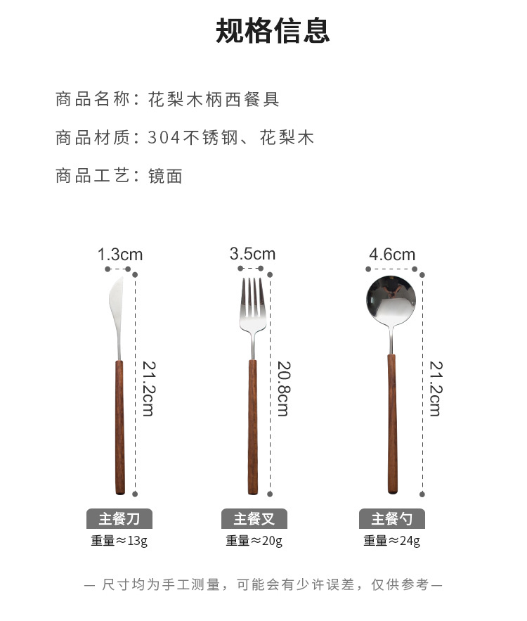 黄花梨木柄304ステンレスヘッドナイフフォークスプーン家庭用ホテル洋食食器工場卸売り