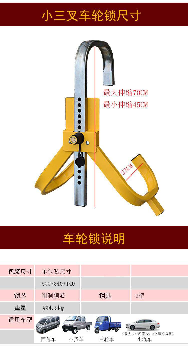 厚みのあるクリップホイールロックは、SUVロック、トラック三叉ロック、吸盤ロック、Lubaタイヤロックとして使用できます。