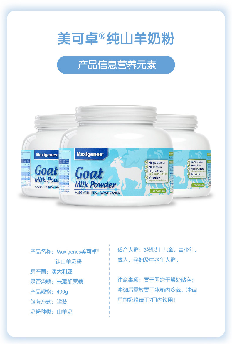 澳洲进口Maxigenes美可卓山羊奶400g 成人中老年高钙孕妇儿童营养