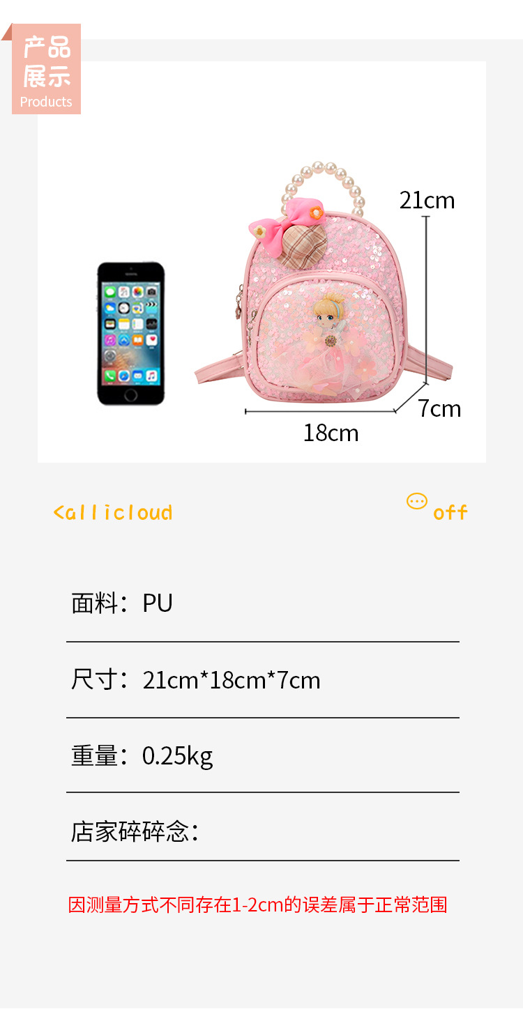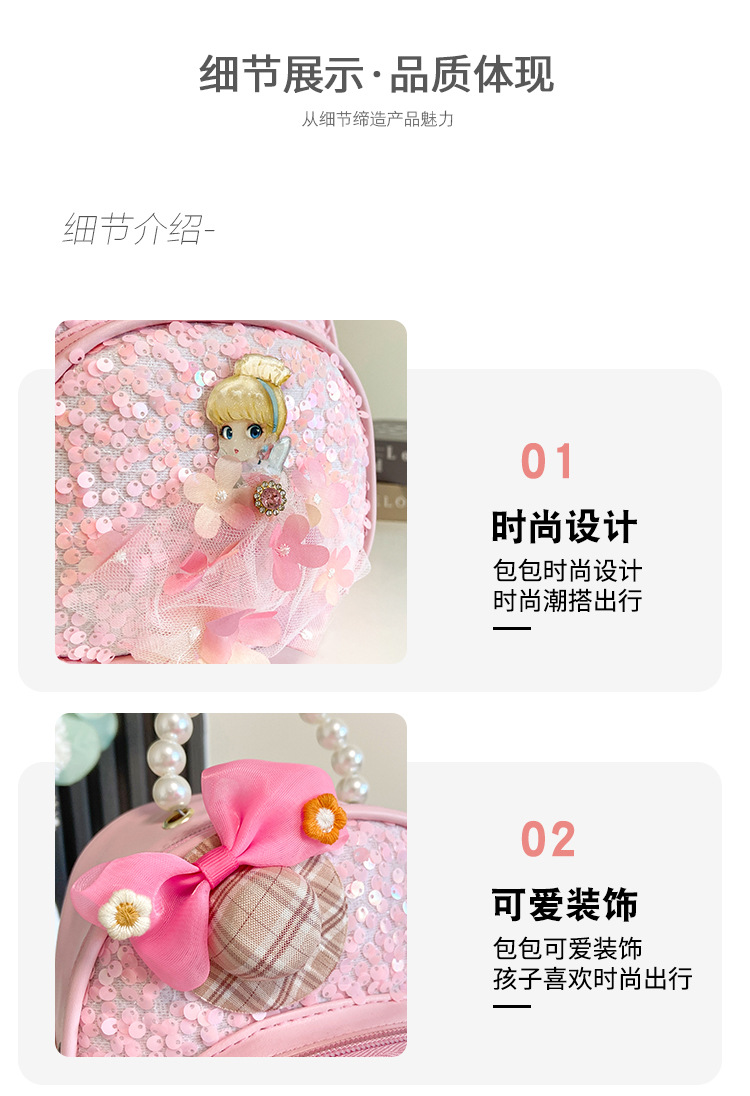 国境を越えた新作 子供用バッグ 女の子用 ディテール装飾付き キラキラ光るリュックサック スクールバッグ