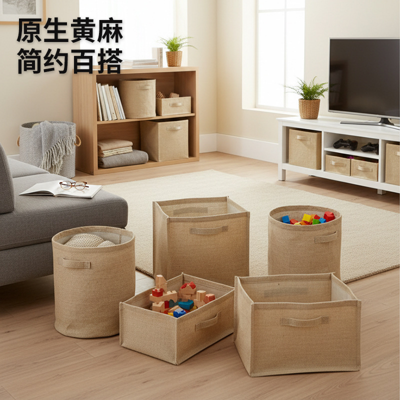 素朴时光日系黄麻可折叠脏衣篮儿童玩具收纳筐家用衣物布艺收纳箱
