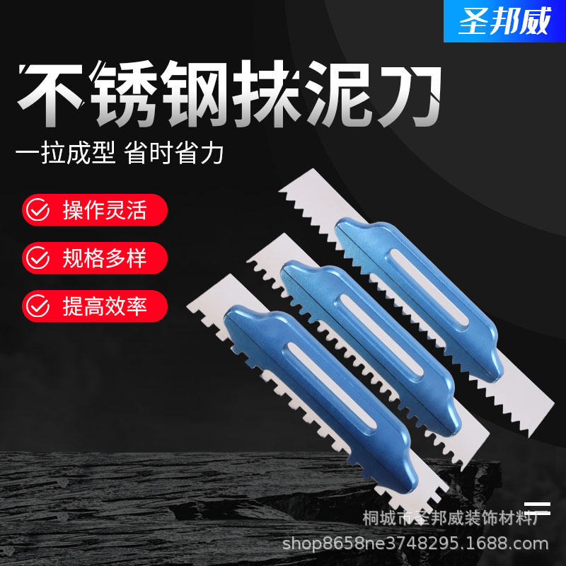 瓦工抹泥刀不锈钢抹泥刀锯齿抹刀刮腻子大白贴墙砖清漆抹泥板多用