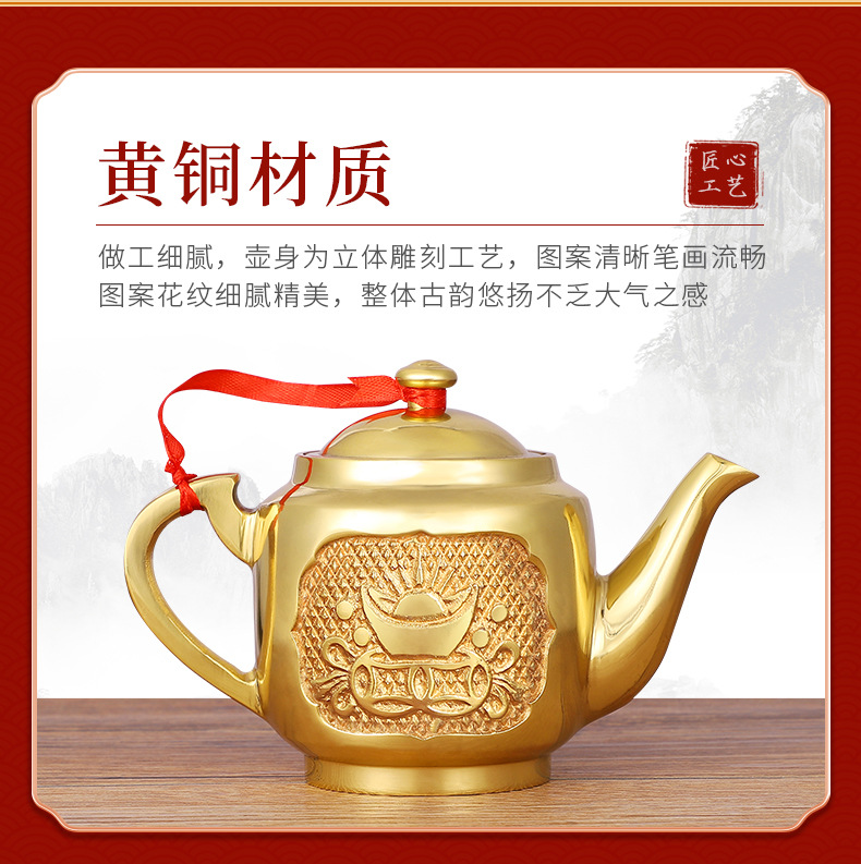真鍮のティーポットの置物創意的なティーポット工芸品の置物家庭用お寺に仏像ティーポットの置物卸売りを供えます。