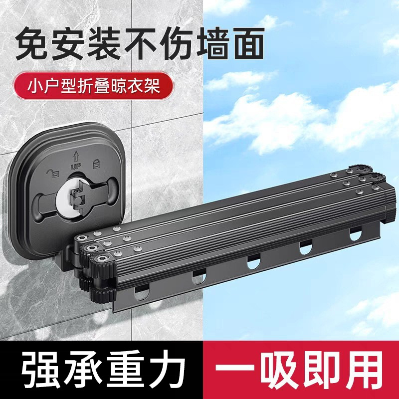 クロスボーダー吸盤式折りたたみ物干しラック アルミ合金製バルコニー伸縮式物干しラック 穴あけ不要物干し竿 浴室カーテン ドロップシッピング