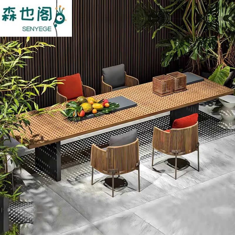 庭院户外桌椅柚木藤编铝合金防晒组合别墅花园露台家具餐厅酒吧椅