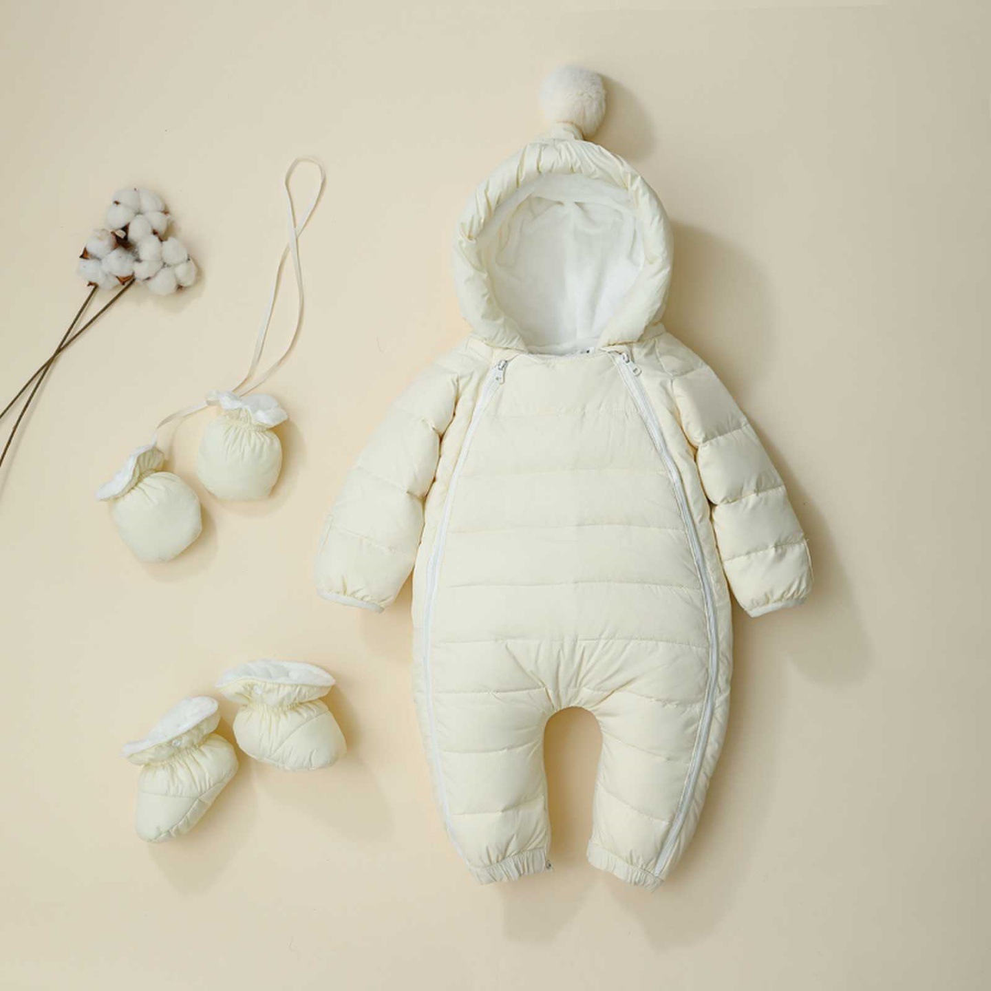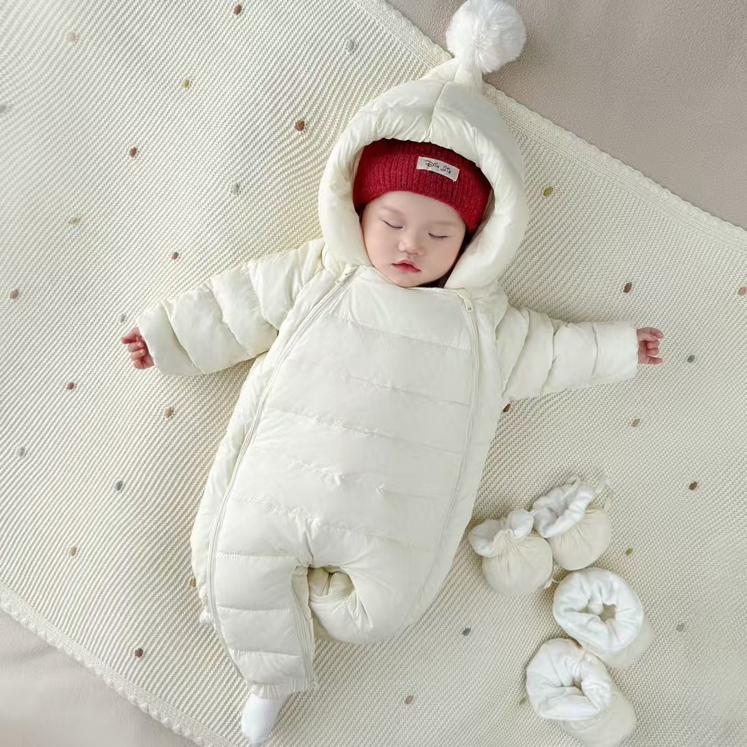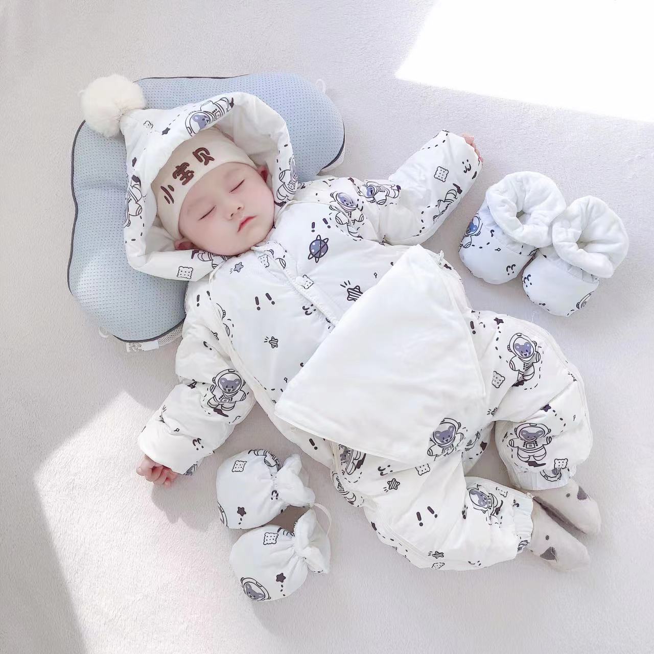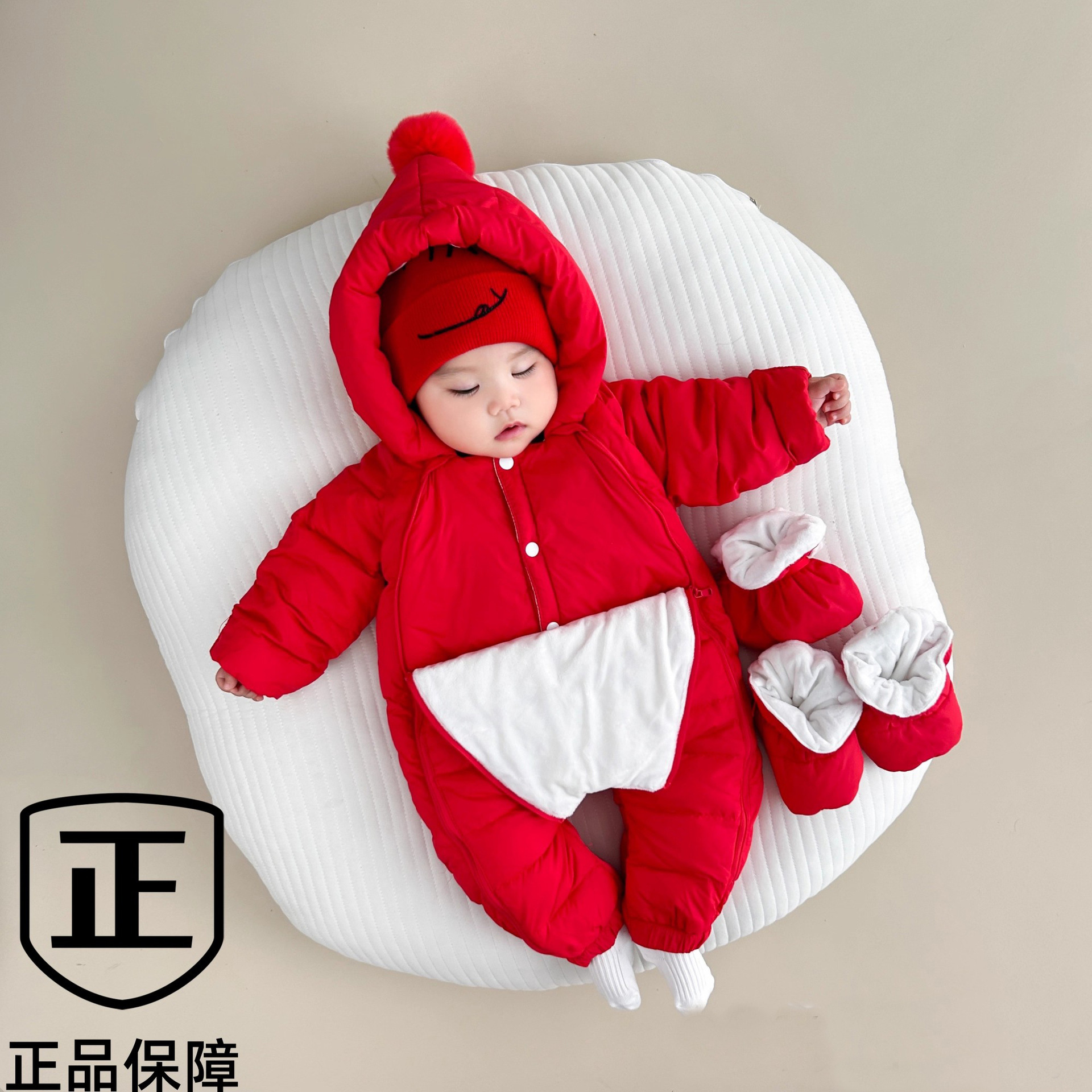 婴儿羽绒服连体衣男女宝宝外出连体哈衣新生儿冬季加厚印花抱衣