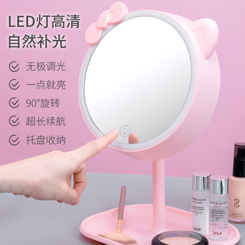 クロスボーダーLEDライト付き化粧鏡デスクトップデスクトップ携帯スマート充電補光美化粧鏡寮化粧鏡