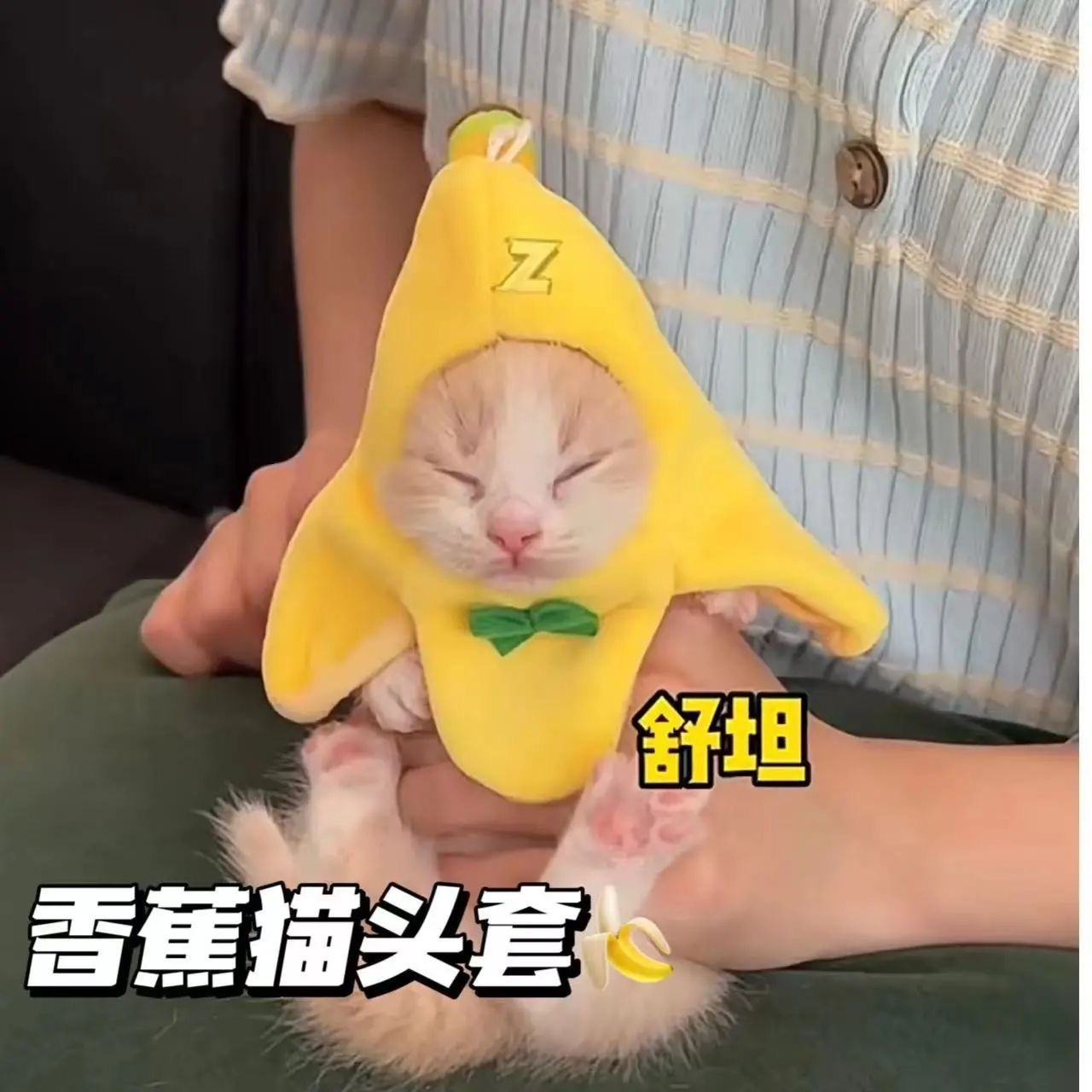 バナナ猫mini頭セットかわいい猫が道具をたたいている頭セットぬいぐるみバナナ猫の子猫が人形をなだめる