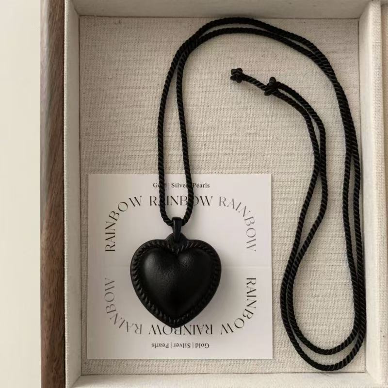 韓国インブロガーfevrrと同じスタイルの黒ピーチハートネックレスニッチデザインレディース新しいネックレスラブナイロンロープ