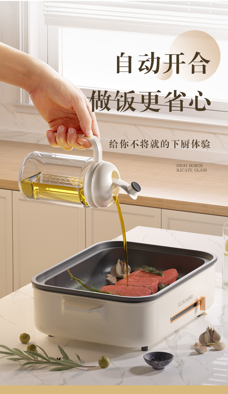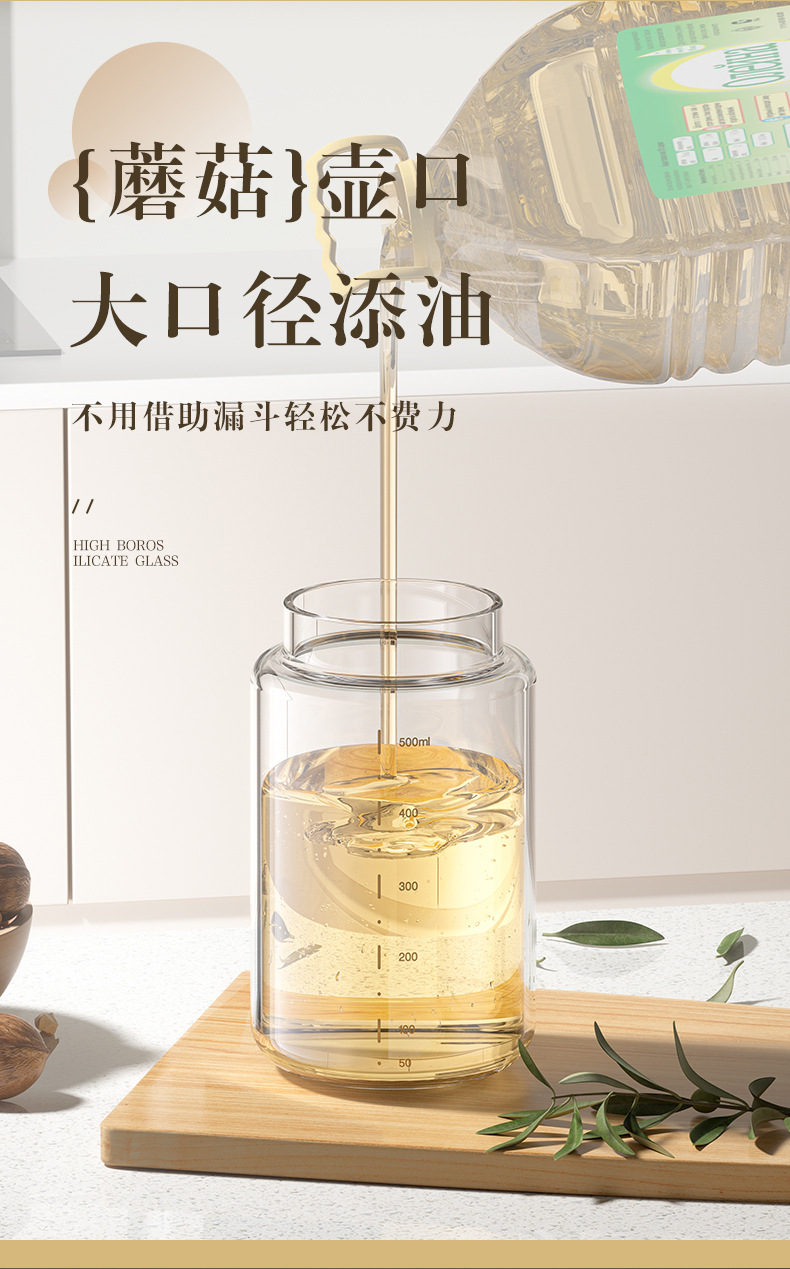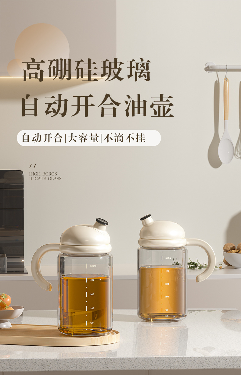 高ホウ素シリコンガラスオイルボトル小油ポット缶醤油酢調味料家庭用キッチン漏れ防止自動開閉目盛が厚くなる