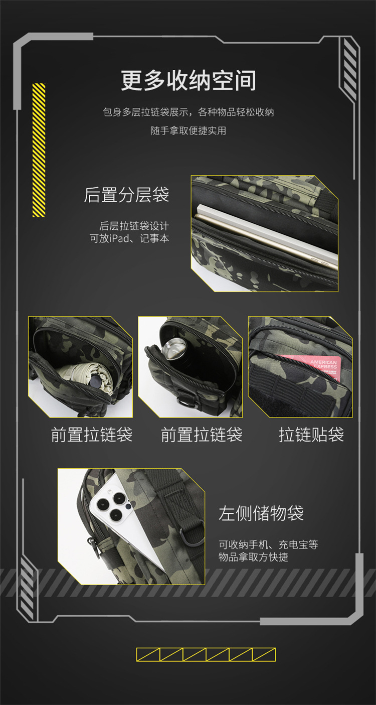 タクティカルチェストバッグ メンズ シングルショルダー クロスボディバッグ アウトドア ルアー迷彩 大容量 多機能 メンズ スリングバッグ バックパック