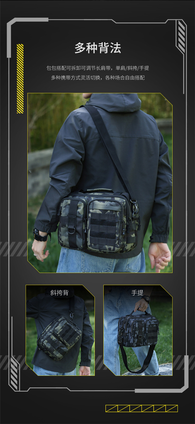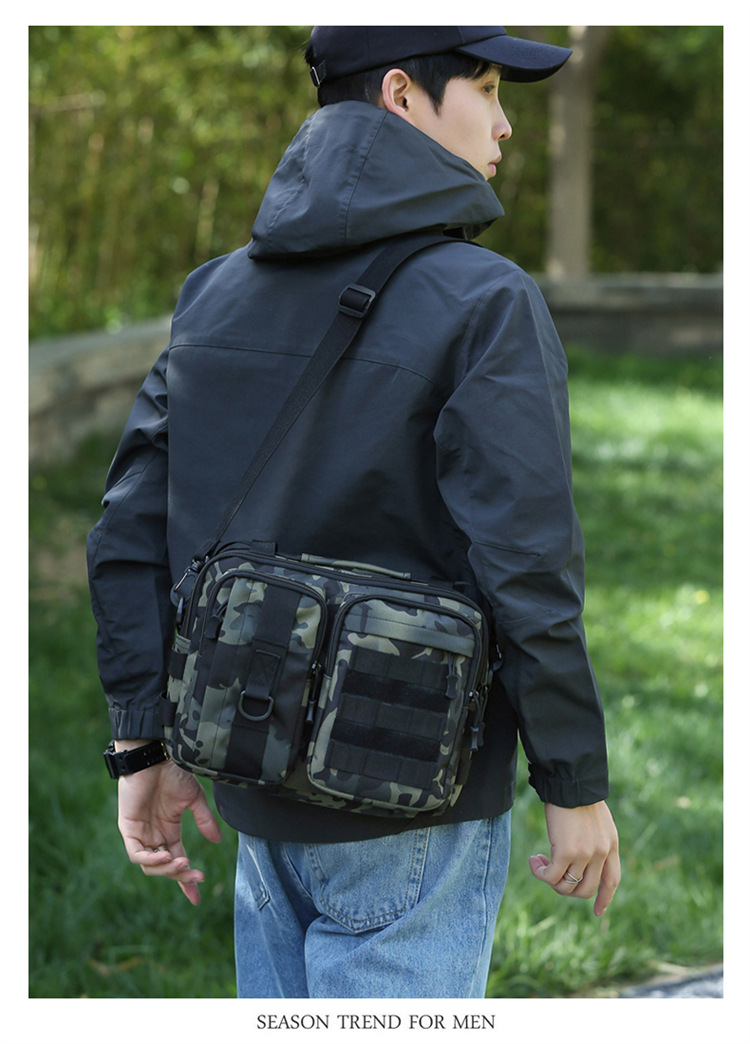 アウトドアレジャーショルダーバッグ迷彩柄小型バッグ斜め掛けキャンバススポーツバッグ戦術風男女兼用ナイロン耐摩耗斜め掛けバッグ