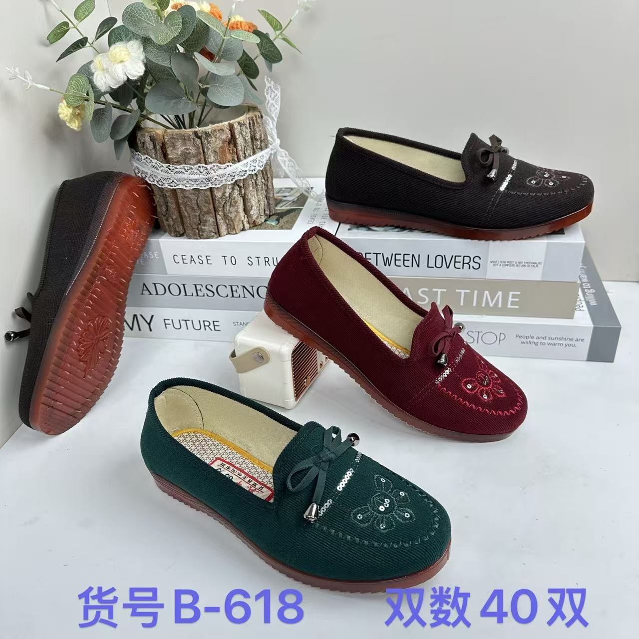 2026年春夏老北京布靴女性用平底民族風浅口スリッポン中高年向けお母さん靴