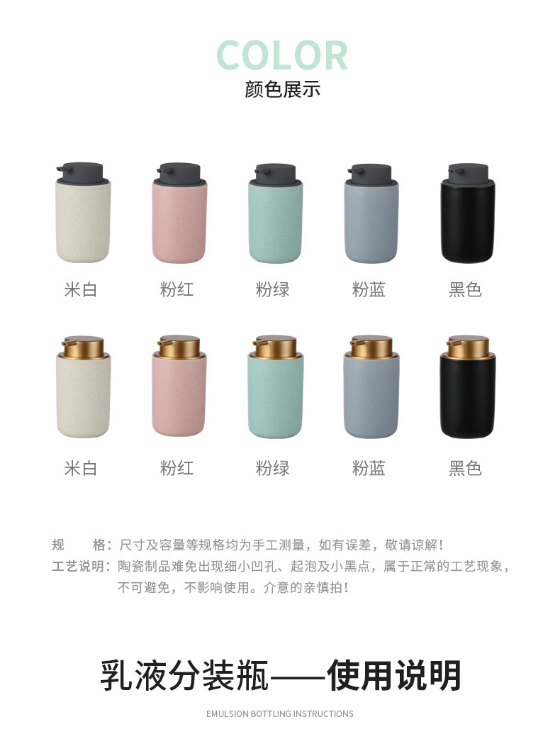 シンプルな家庭用セラミック分注瓶手洗い液シャンプー乳液入浴露瓶浴室用品リンス収納瓶